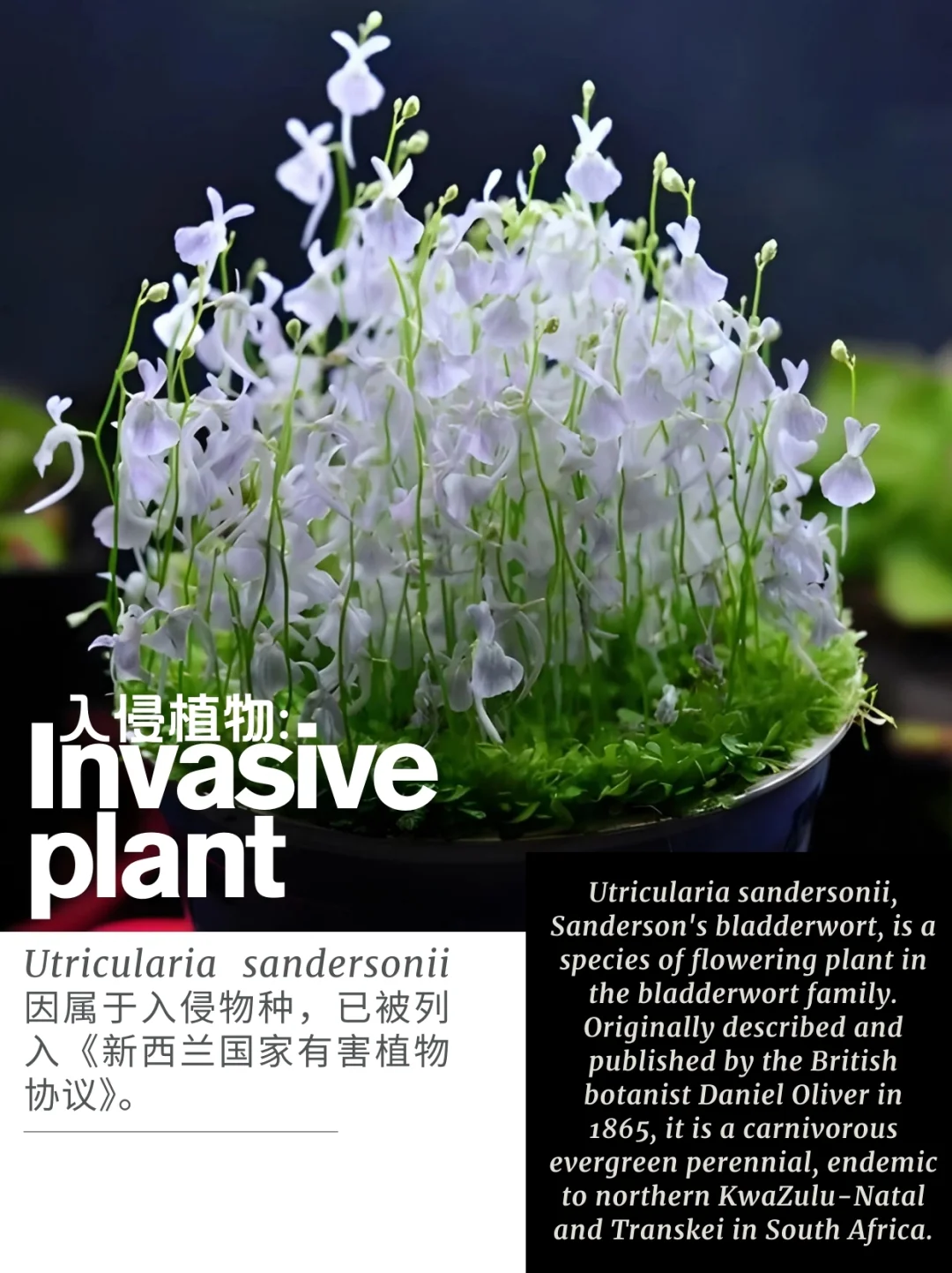 Utricularia sandersonii因属于入侵物种,已被列入《新西兰国家有害植物协议》。