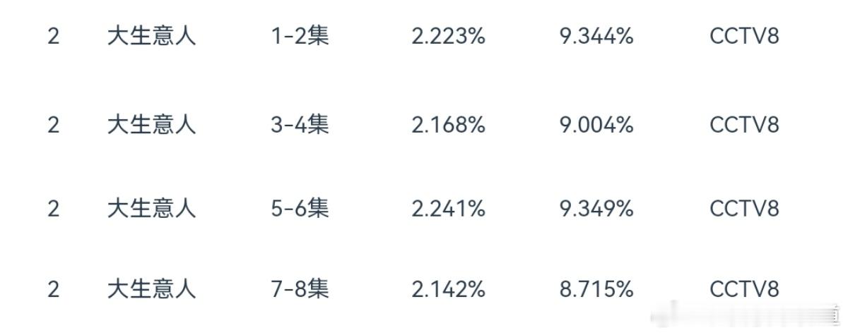 大生意人央八收视率古装年冠妥了,剧情稳稳的好。大生意人