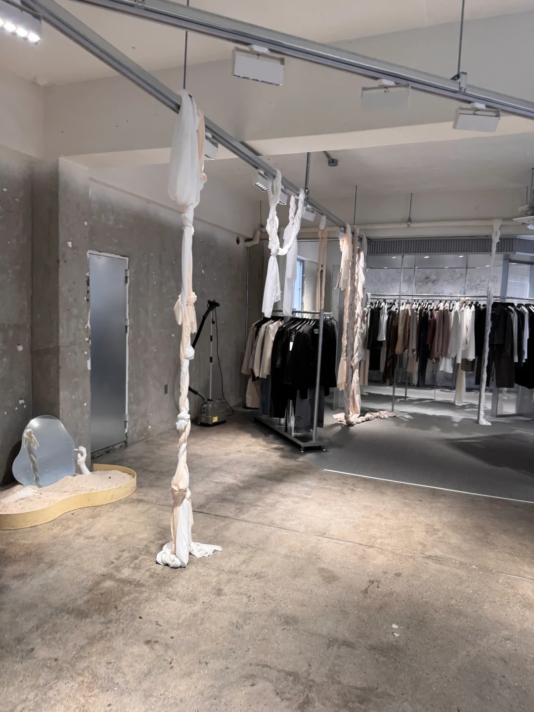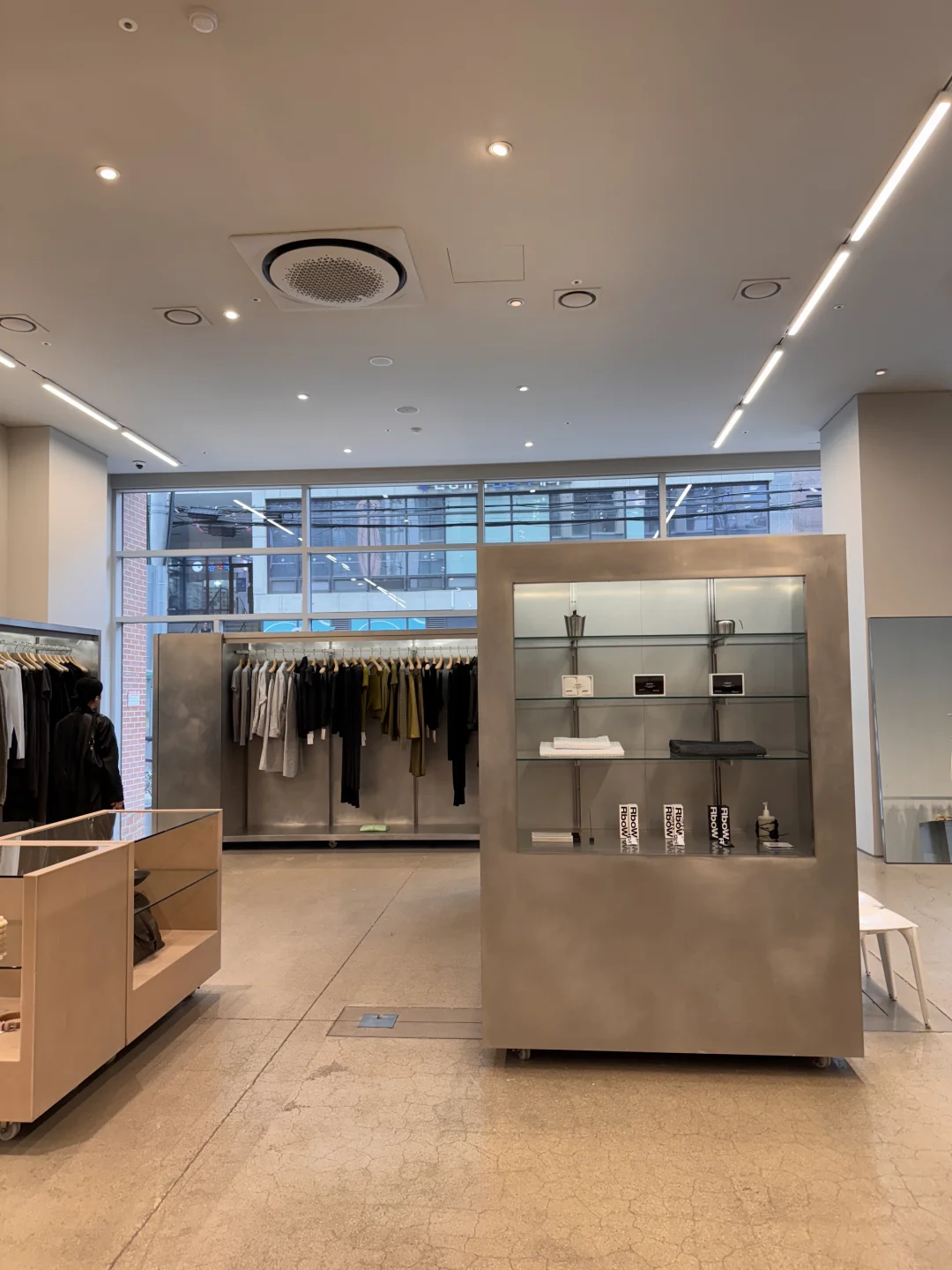 工业风时装实验室。韩国设计师品牌Insilence的第二家旗舰店,由旧工厂改造而成,主打“沉默美学”。品牌以极简工业风服装为主,擅长将解构剪裁与功能性结合,吸引追求小众质感的MZ世代。