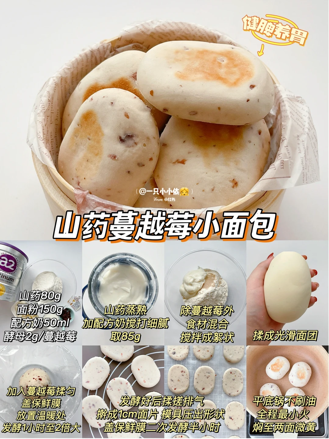 山药80g/蔓越莓/面粉150g/配方奶50ml/酵母2g