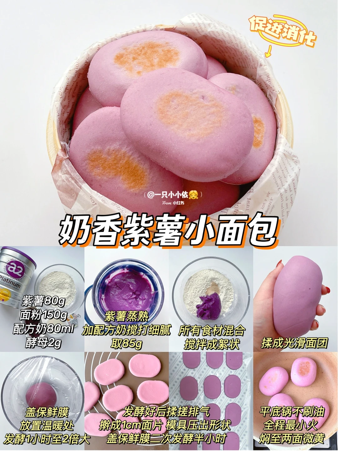 紫薯80g/面粉150g/配方奶80ml/酵母2g