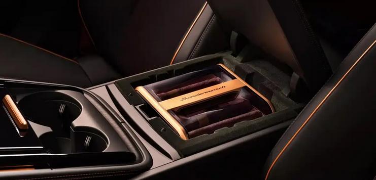 为中东专属打造 内饰纯手工 Panamera Turbo定制版官图发布 日前,保时捷发布Panamera Turbo定制版官图,该车型为一位中东专属买家打造,内饰纯手工打造,在迪拜举行的保时捷经典车展上亮相。 这款定制版车型外观采用了两种色调的车漆,车漆将莱布朗紫金属漆与日落红相结合,两种颜色在车身表面流畅过渡,甚至还有金色的闪光颗粒。车身还采用了金属色的装饰条,以及带有同样金属色的21英寸轮圈。 内饰在安全带和缝线处采用了日落红和巴瑞克红的配色,还有黑色的皮质以及金属装饰,中控台上还有“Sonderwunsch”字样,表明定制的身份。保时捷还根据车主的诉求,在中控台储物格内安装了雪茄保湿盒,雪松木为内衬,还配有湿度计,以及带照明的香槟柜。就连行李厢也铺满皮革,同样高雅。 点个关注吧!汽节车社,车圈热点资讯每日一扫清!【来自懂车帝车友圈】