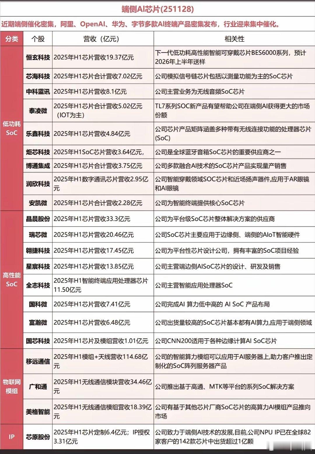 端侧AI芯片!近期端侧催化密集,阿里、OpenAI、华为、字节多款AI终端产品密集发布,行业迎来集中催化。
