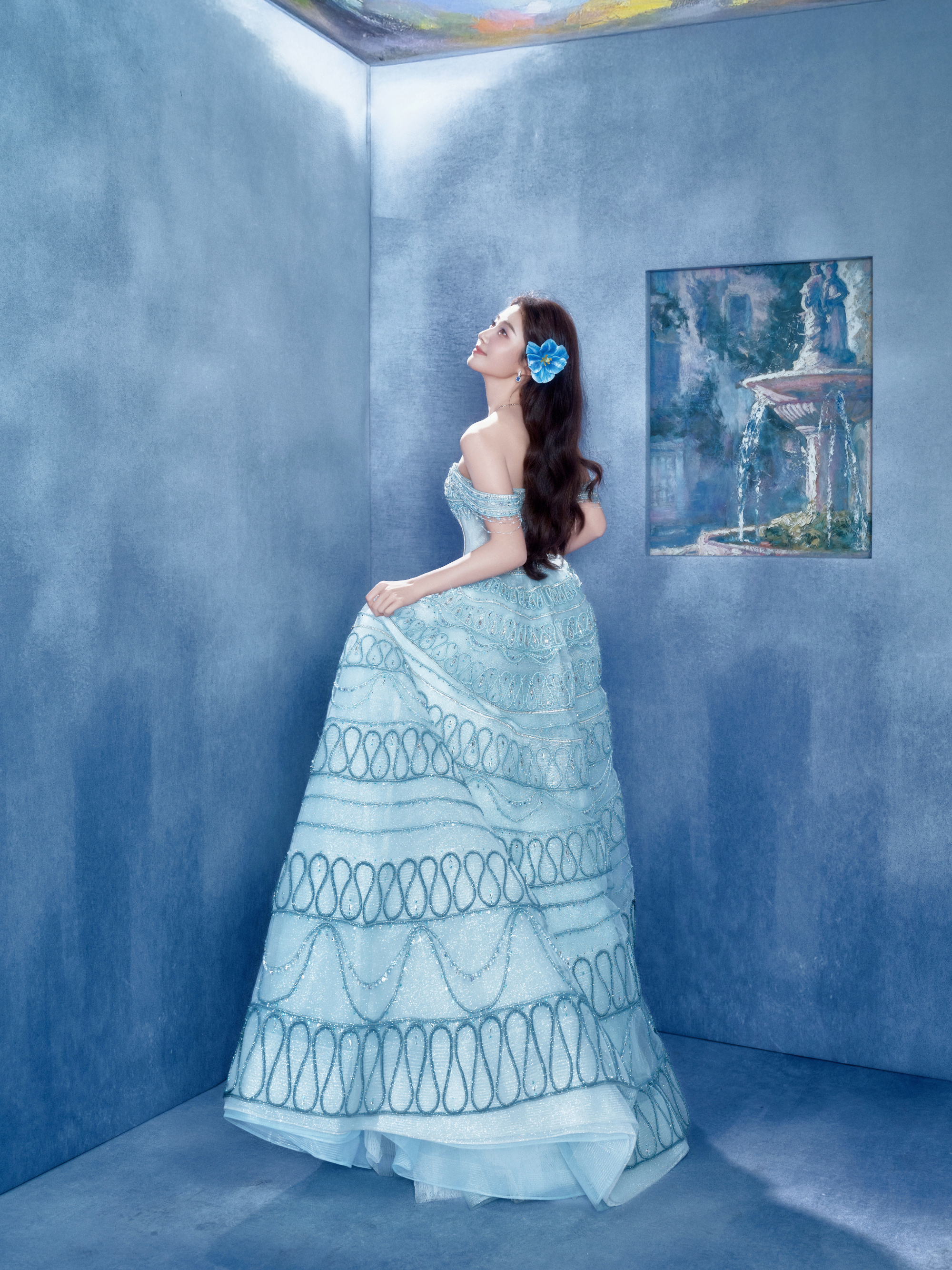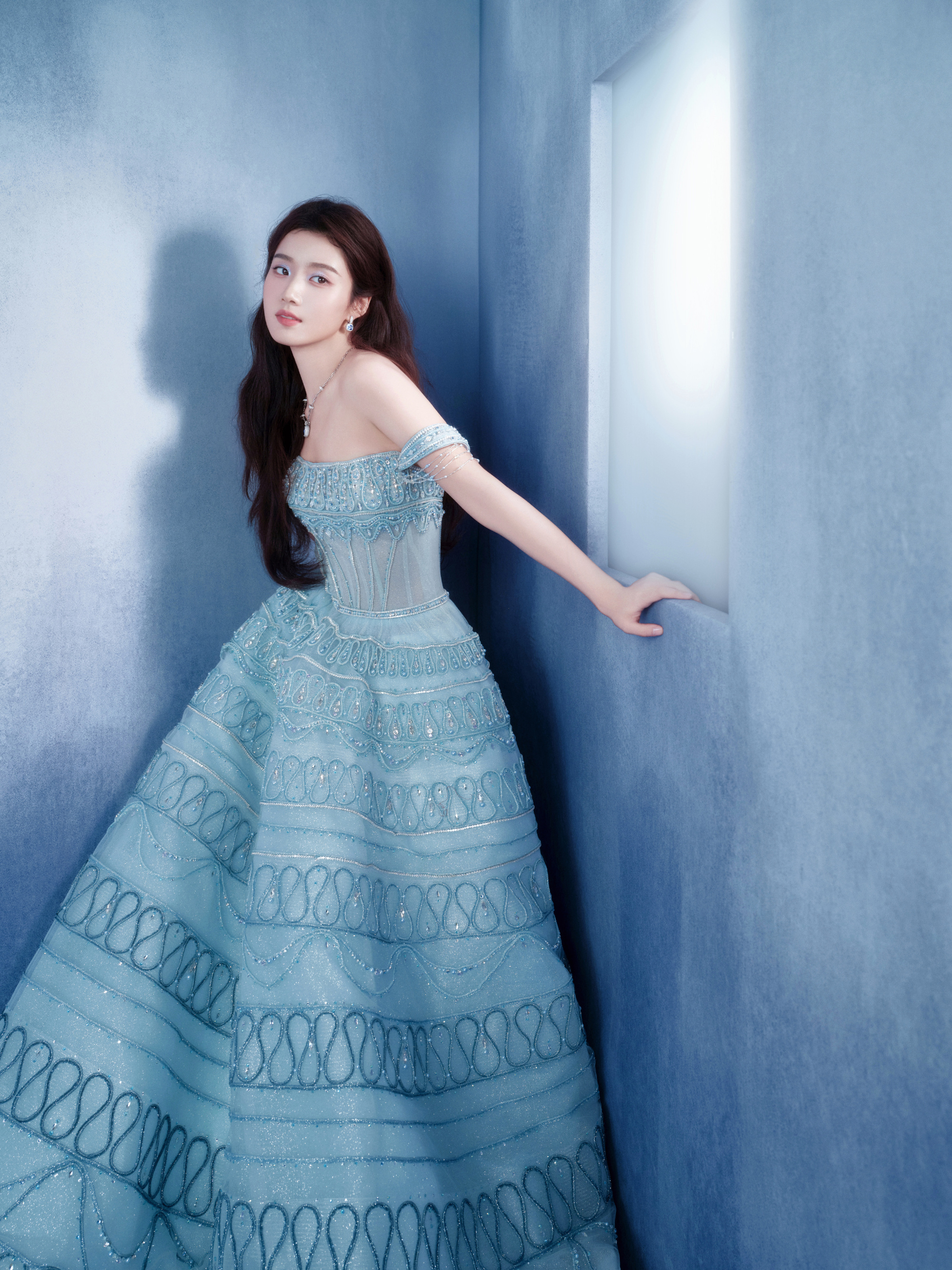 卢昱晓工作室工作室释出卢昱晓优雅写真,缎面材质连衣裙质感高级,简约设计凸显气质,