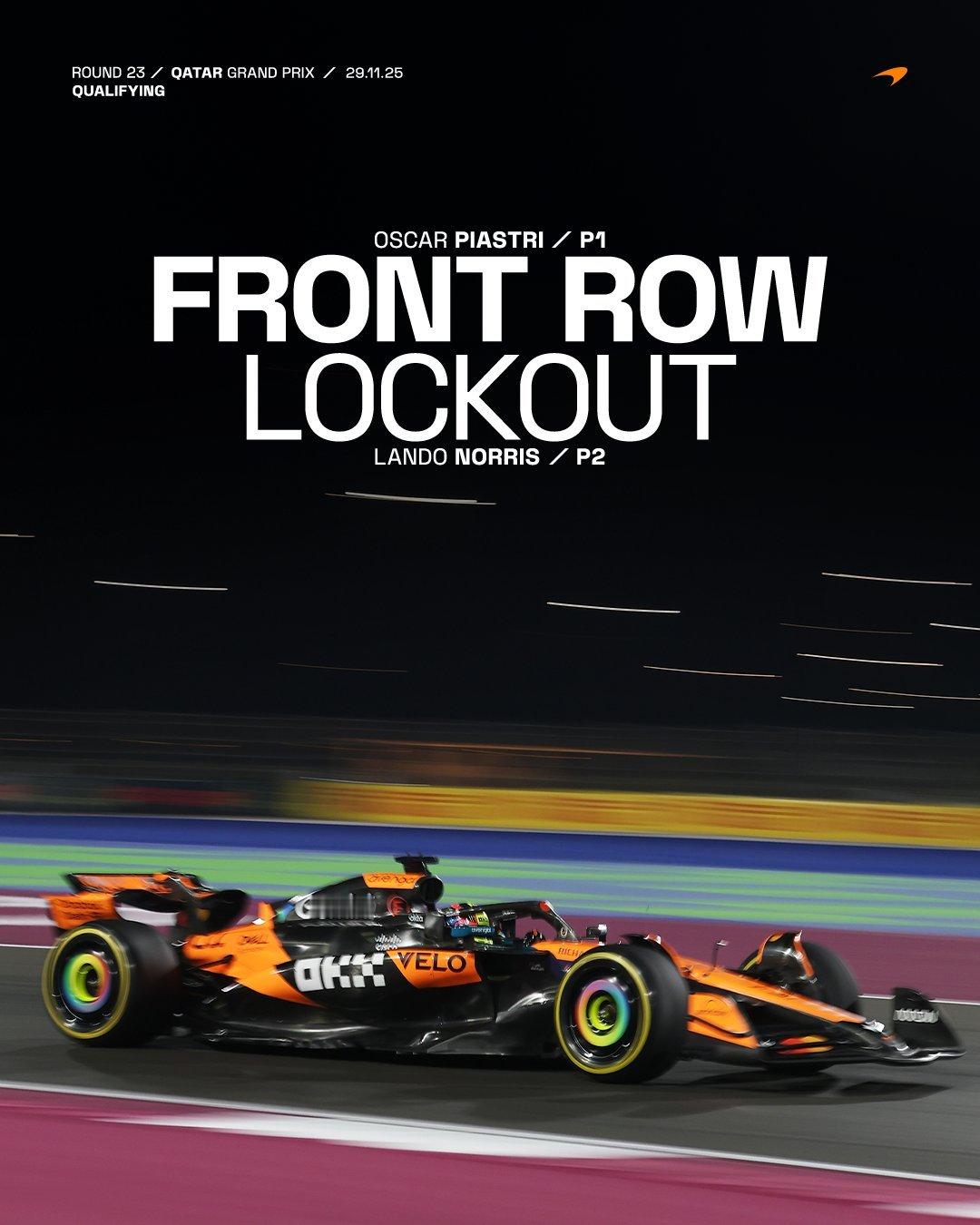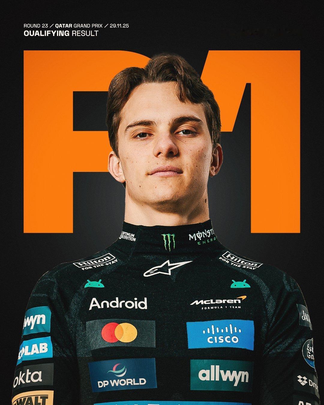 2025赛季F1卡塔尔🇶🇦大奖赛 排位赛结束🔚迈凯伦车队车手皮亚斯特里夺得杆位、队友诺里斯排在第二,红牛车队车手维斯塔潘第三……拉塞尔第四,安东内利第五,哈贾尔第六,赛恩斯第七,阿隆索第八,加斯利第九,勒克莱尔第十……明天正赛将会很有意思(大家都得两停F1赛车2025F1卡塔尔大奖赛