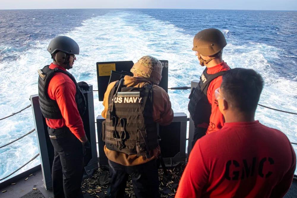 喜欢在中国周边海域耀武扬威,但美国海军实力已经在衰落。 2025年10月28日,炮手助理水兵詹姆斯·瓦拉尔(James Vallar)在前部署的美国“美利坚”级两栖攻击舰“的里波利”号(LHA 7)上进行实弹射击演习时操作M240B机枪。“的里波利”号目前正在执行美军第七舰队作战区的例行任务。美军第七舰队是美国海军部署在前线的最大编号舰队,通常与盟友和伙伴进行互动和协作,以维护自由开放的印太地区。