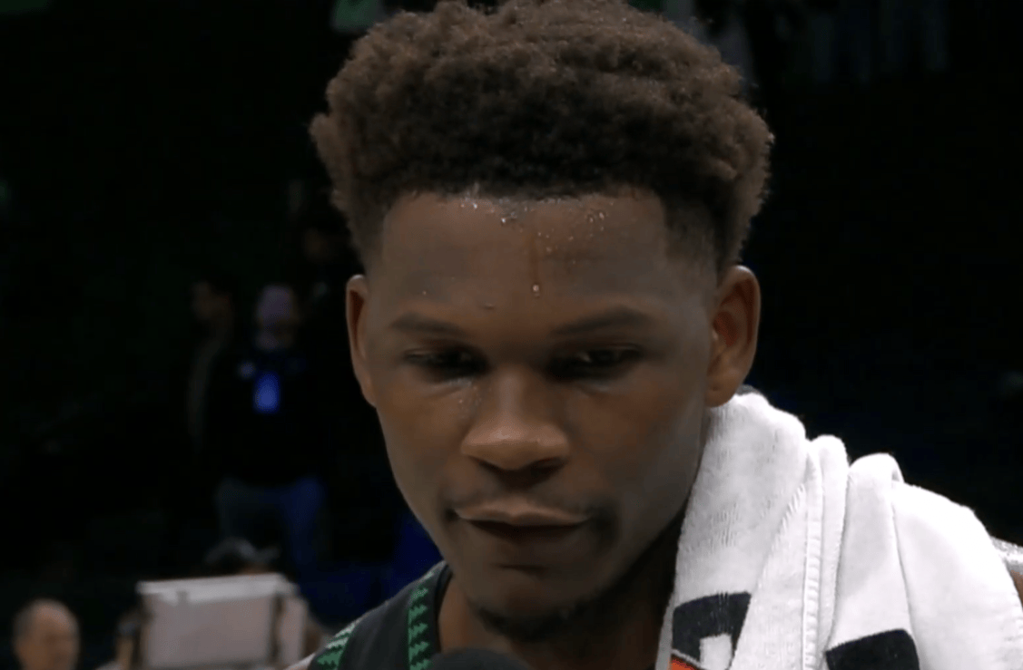 我和兰德尔打了一个配合,我想拉开单打,然后球掉了……我就直接瞎扔了一下,结果老天回应我了(笑)。