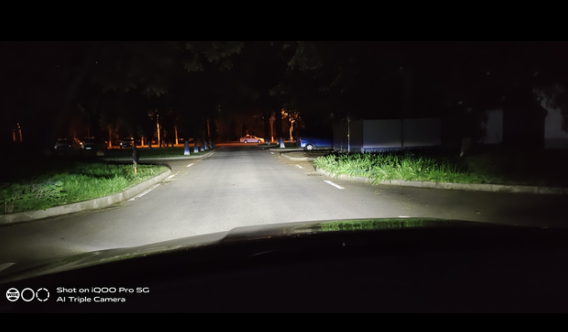 夜晚灯光实测 刚好晚上用车,给大家看看秦plus dmi大灯效果,总体来讲近光灯照度,铺散均匀度足够用,感觉宽幅稍微有一丢丢的遗憾,就是近处两侧灯光盲区还是有些许大可能以前的灯看惯了,不能算缺点。远光灯照远景可以,但是路面却比近光灯的照射范围大不了多少,可以看看两两对比图,都是一近一远原地切换的,远处物体都亮了,就是路面还是挺黑,也算是鱼和熊掌不可得兼。相比较同价位的车,也算是不错的水平了还算满意,如果山区夜跑得多可能还需要升级灯光。日常城市和高速用完完全全足够了