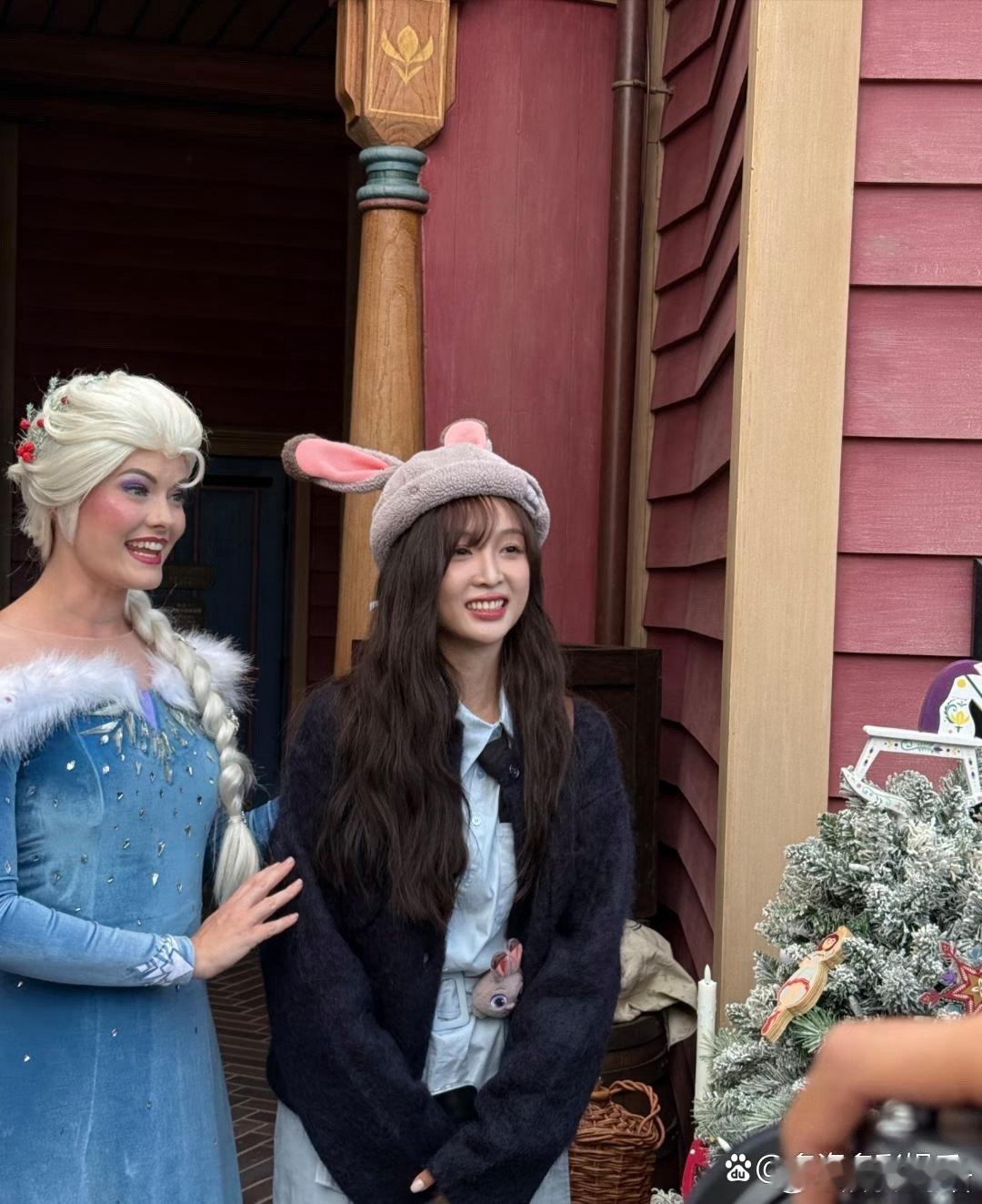 吴宣仪香港被偶遇,她戴着兔儿帽,穿着蓝色外搭里面配连衣裙,好可爱又漂亮!