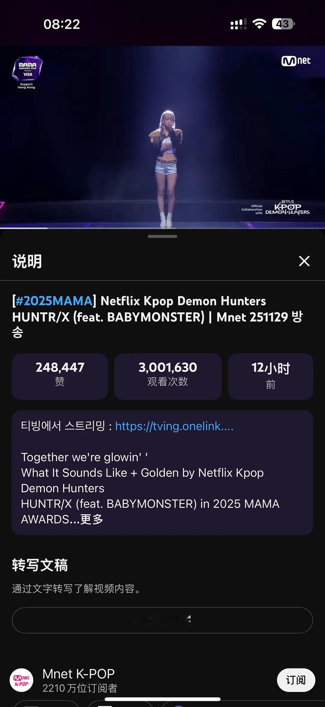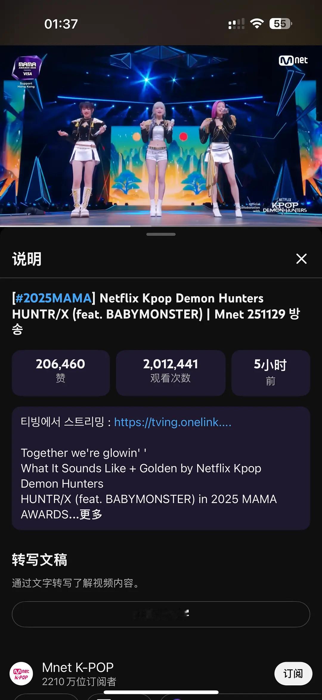 babymoster MAMA舞台出圈,3小时100万达成,5小时200万达成,