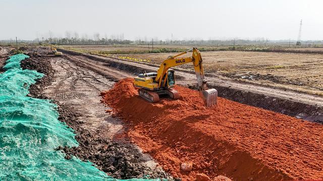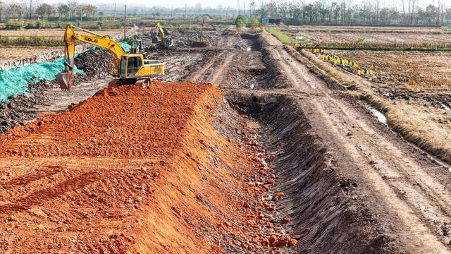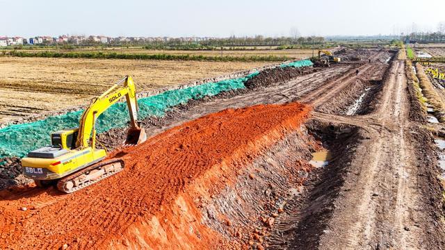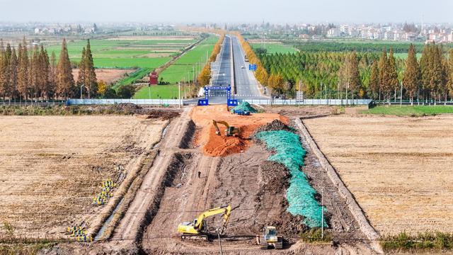 据介绍,该路段涉及江陵县秦市乡段全长约1.8公里,设计为双向六车道,路面宽约24米,包括两侧分界沟在内的总控制宽度约为三四十米。项目于今年10月下旬正式开工,目前已完成总工程量的10%左右,预计将于2026年底建成通车。