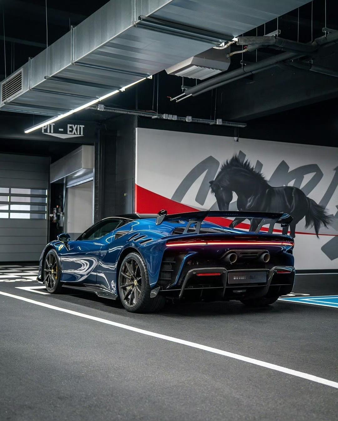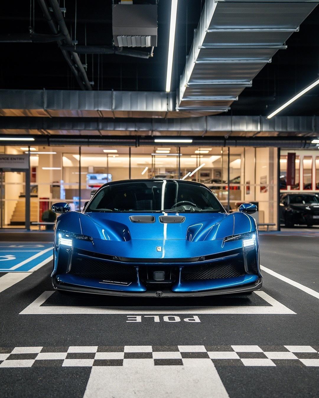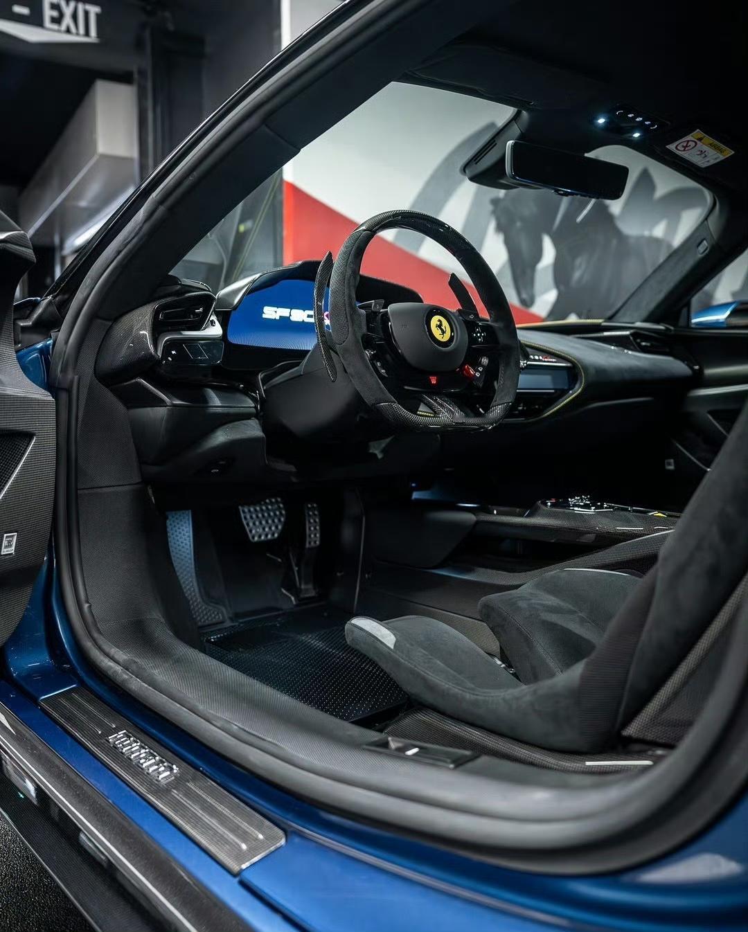 这款蓝灰色涂装的法拉利SF90 XX Stradale展现了极致的个性。 作为首个获准上路使用的XX系列车型,SF90 XX Stradale通过提升至1,030马力的动力、高度精细化的空气动力学设计以及异常高效的四轮驱动系统,将性能极限推向新高度。