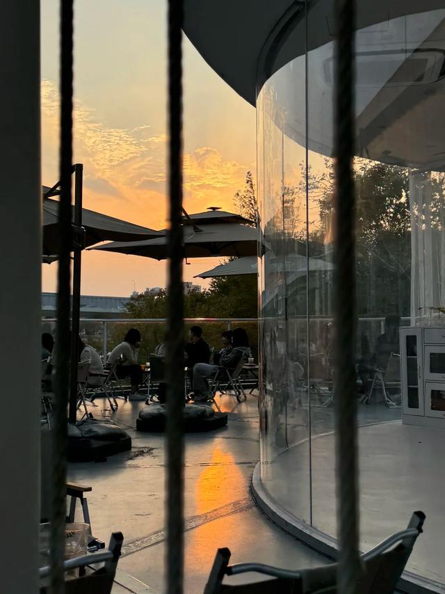 Manner(苏州河工业文明展示馆店)的“飞碟”造型也太酷了。坐白色圆柱电梯到三楼,推开门直接被惊艳到!