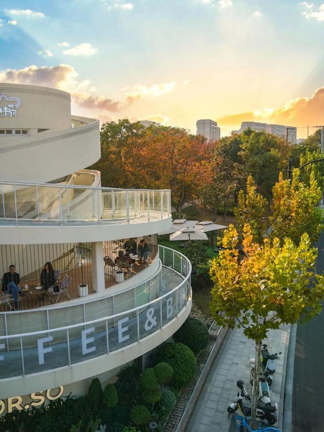 OR.SOCoffeeLab&Bar奶白色螺旋建筑太梦幻了。远远看就像一颗温柔的棉花糖,随手拍都是大片。