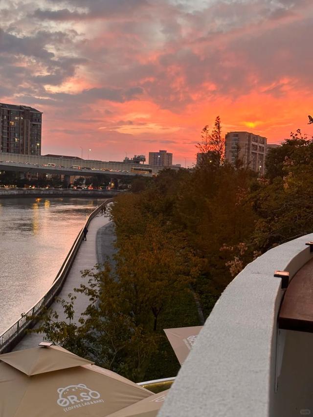 傍晚时分,落日把河面染成金色,坐在临窗位喝着咖啡,看着粼粼波光,感觉所有烦恼都被治愈了。