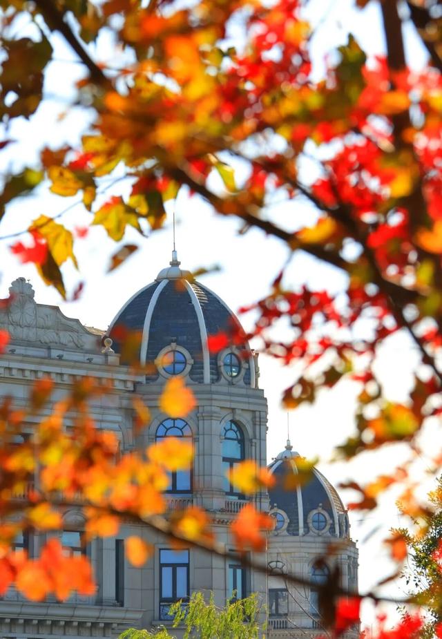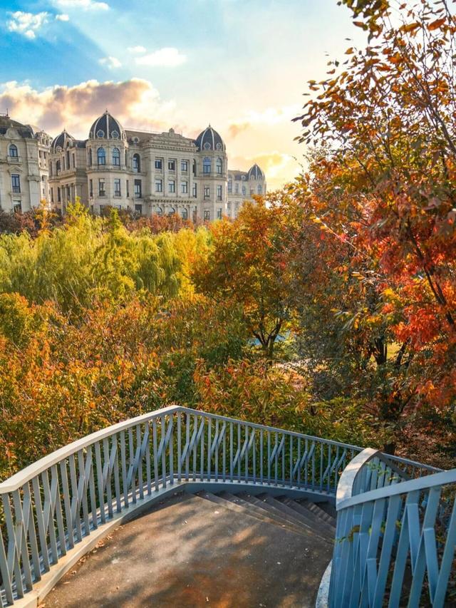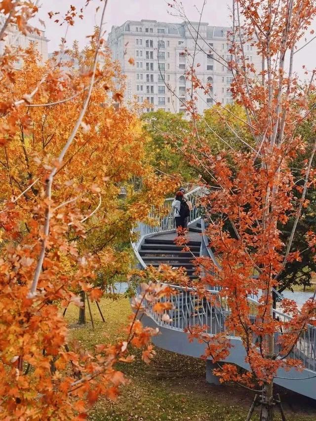 半马苏河云岭公园红枫与欧式建筑的撞色美学