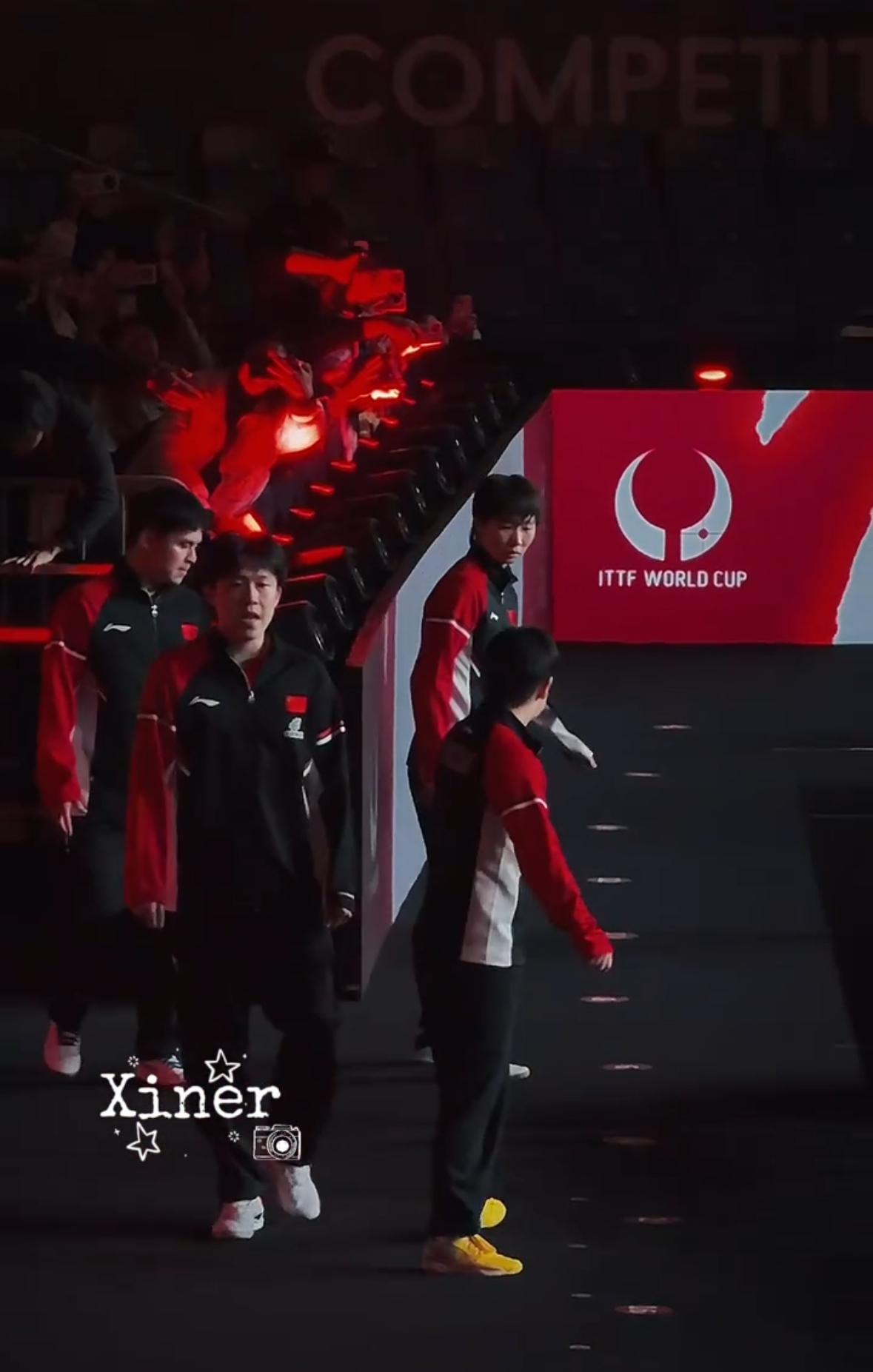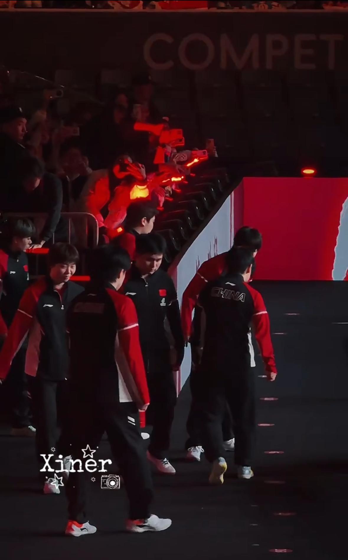 国乒一出场,大家东张西望,好像忙着寻找宝藏,莎莎带着一群人找座位! 带路的迷糊,跟着也懵,整个队出场成为一团了,莎莎跟曼昱,小王跟莎莎,结果全错了,他们相当权威,根本不怕找不到座位,就当作找座位之旅,一段小插曲,多少人感觉他们这样很可爱,与众不同的一群国乒选手!