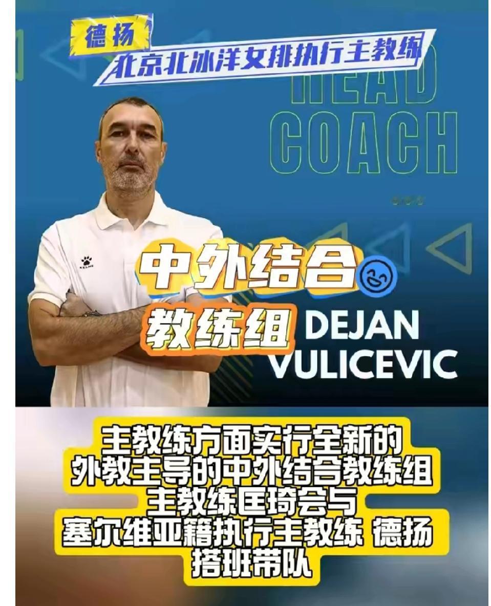 北京女排教练组大换血!外教德杨任北京女排执行主教练! 根据天天体育频道,北京女排新赛季排超大换血,北京女排实行外教主导的教练组模式! 北京女排新赛季中方主教练匡琦,外籍执行主教练德杨。主教练方面实行全新的外教主导的中外结合的教练组模式! 简单点理解,这是不是意味着北京女排更换了外籍塞尔维亚的主教练啊?外教主导,那不就是外籍主教练主要领导负责吗? 虽然名称上还说匡琦是北京女排的主教练,外籍教练德杨是北京女排执行主教练。 上赛季排超联赛的天津女排,就是第一个推出执行主教练的队伍。当时王宝泉指导是天津女排的主教练,陈方教练是天津女排的执行主教练。实际上天津女排的训练比赛都是执行主教练陈方教练带队。 新赛季北京女排也推出了执行主教练,这是第二支队伍采用这种模式。按照上赛季天津女排的做法,那新赛季北京女排将由外籍执行主教练带队训练比赛。 匡琦主教练应该也是随队,会不会就像上赛季王宝泉指导一样,退居二线呢?看来新赛季北京女排的动作挺大的,引进三名外援,又引进外籍执行主教练! 北京女排的新赛季排超联赛目标野心不小,想从江苏女排上海女排手中争夺冠军奖杯! 北京男排和北京青年男排也更换了主教练。初辉教练带队北京青年男排。原来的青年男排主教练程力均担任北京男排的主教练。欢迎点赞评论关注,拒绝抄袭,天涯体育排球讯