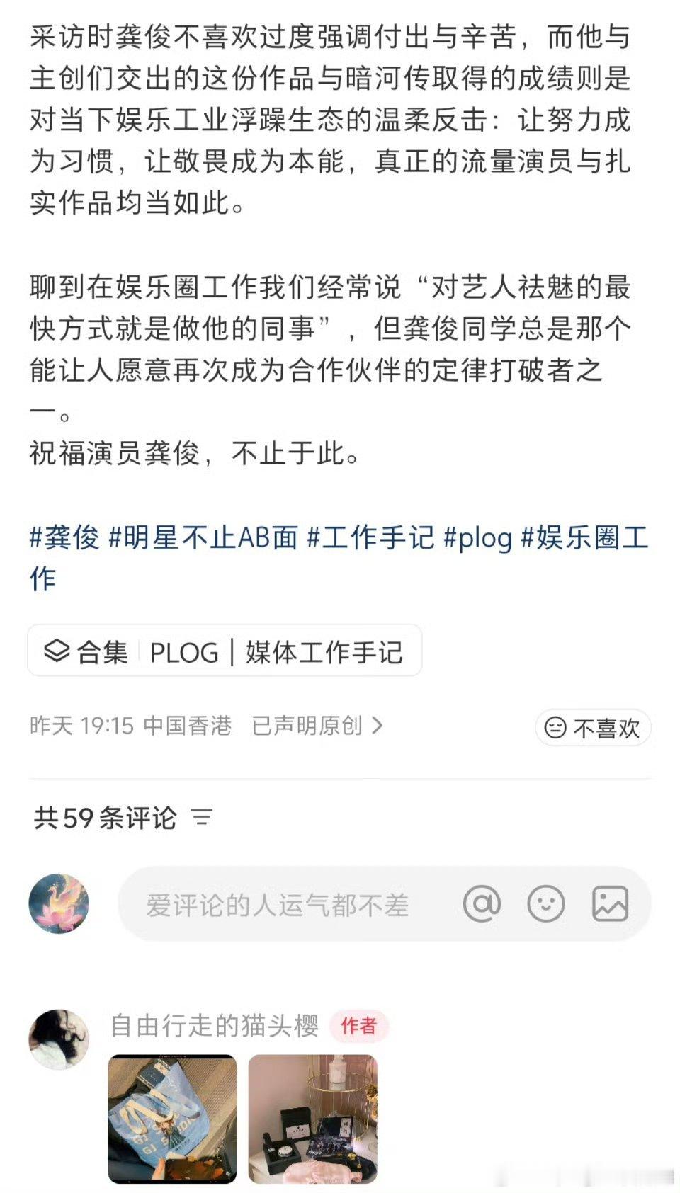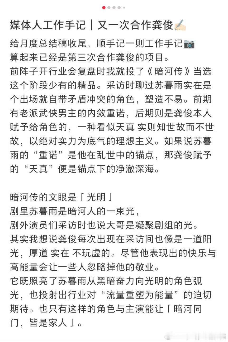业内和媒体工作人员对龚俊几乎都是敬佩与夸赞,没有谁比他们更了解行业内幕,演员拼到
