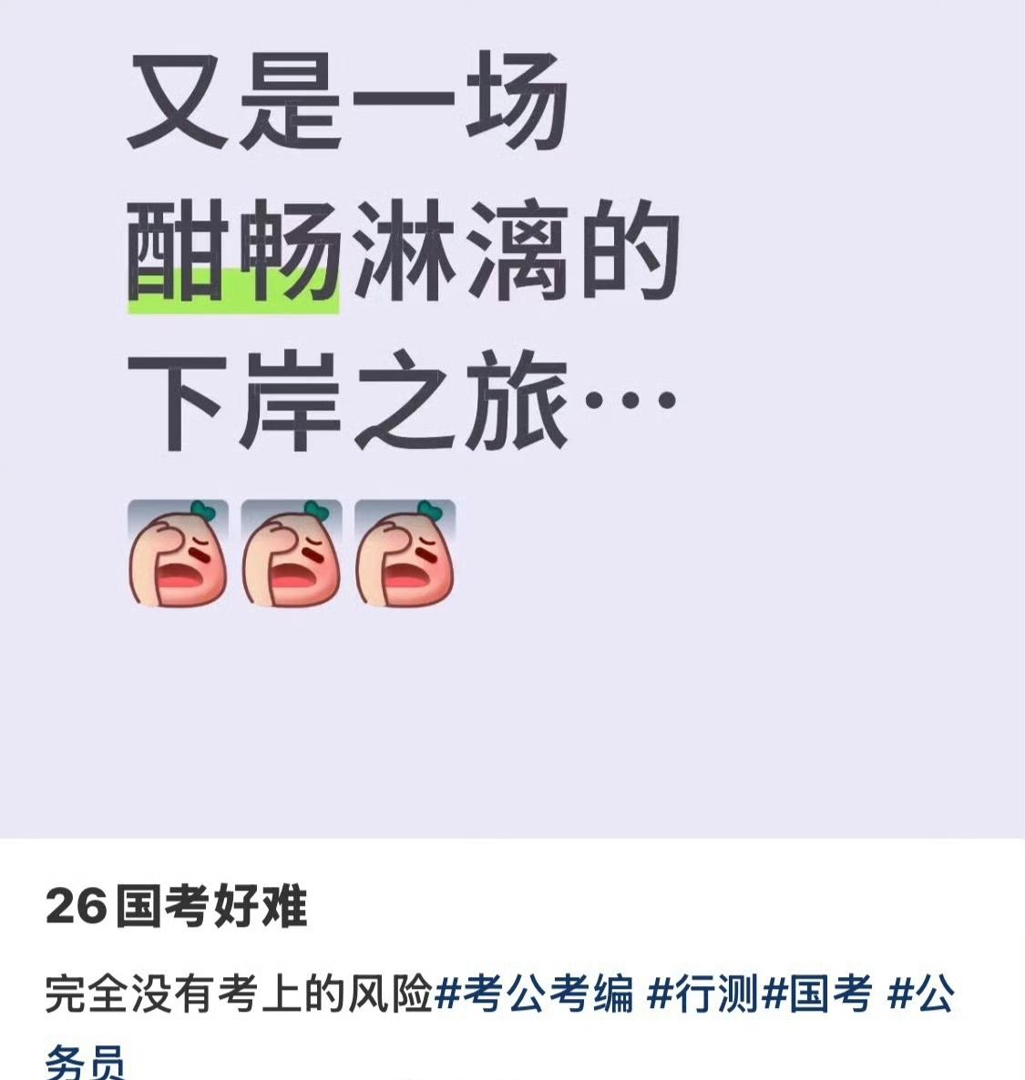 2025国考有多难?98:1百里挑一,考生吐槽:试卷厚如书,申论作文无材料可依! 上午国考行测一结束,全网考生集体“哀嚎”!平均98:1的报录比,本来就是百里挑一的战场,今年考题直接把难度拉满,难怪走出考场的考生个个面带“沧桑”。 行测刚拿到手就惊了,试卷厚得像本小册子,120分钟要刷135道题,平均不到53秒一道,好多人直呼“做不完,根本做不完”,最后十几道常识题全靠蒙D续命 。更绝的是新增了政治理论模块,20道题直接单列考查,常识题量还变相增加,知识点又偏又杂。 申论更是让人摸不着头脑,不管省部级还是市地级,作文居然没有特定对应材料,得吃透全篇才能立论,还有久违的词句理解题强势回归,“不是产业,竟是产业”直接给考生整懵圈 。 虽然竞争卷到飞起,热门岗位甚至2300:1,但能走进考场就已经赢了一半!备考时的挑灯夜读都不算白费,经历过这场硬仗,以后啥挑战都不怕~ 你行测蒙对了几道?申论作文立意跑偏了吗?来评论区分享你的考试“名场面”,抽3人送备考干货礼包!觉得难的宝子也别慌,评论区抱团取暖,明年咱们再战!