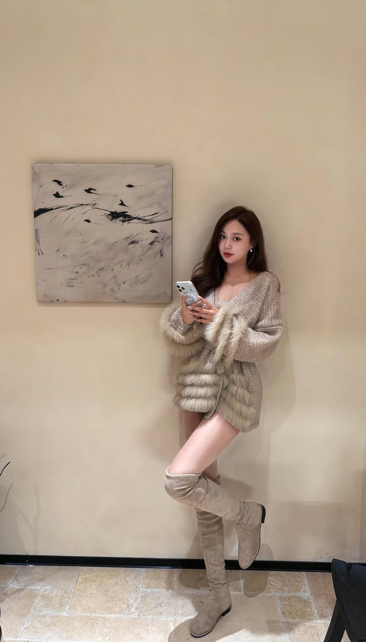 冬日暖阳下,温柔毛衣与毛绒靴的完美搭配,享受一杯暖茶带来的宁静时光。🍂☕️🌞