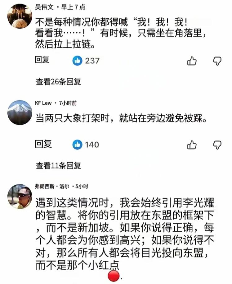 新加坡总理黄循财为高市早苗拉偏架,新加坡网友都看不下去了,不是每种情况你都得喊“我!我!我!看看我……”有时候,你只需要坐在角落里,然后,拉上拉链。