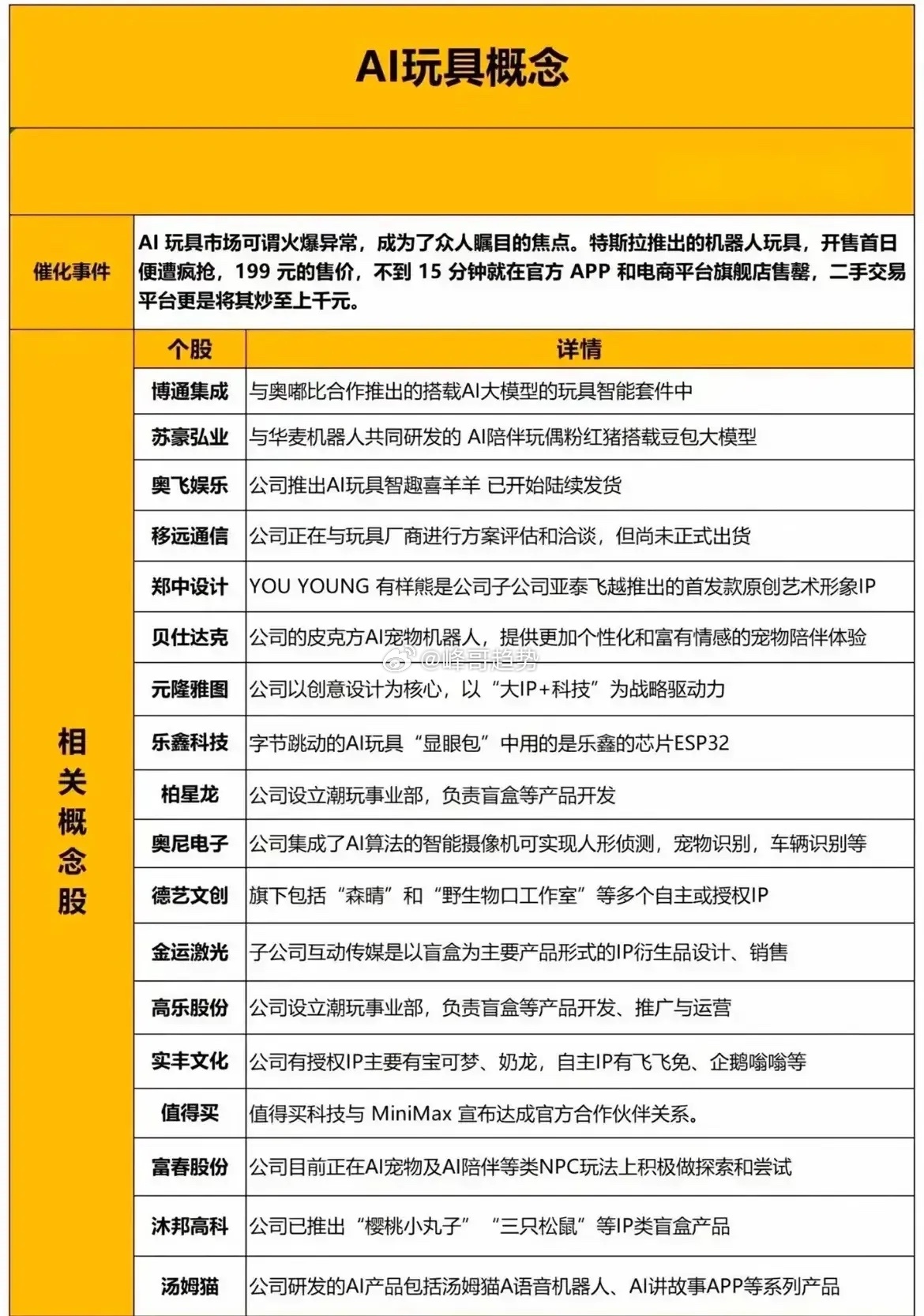 11月28日,华为首款AI情绪陪伴玩具“智能憨憨”(与珞博智能联合开发的Fuzozo芙崽定制款)在华为商城开售,售价399元。产品接入华为小艺大模型,支持语音交互、触摸互动,适配鸿蒙生态,开售即秒罄,多次补货仍迅速售罄,目前处于暂时缺货状态,京东自营旗舰店三款配色累计销量超6500件,凸显市场对AI陪伴产品的旺盛需求。AI玩具产业链上市公司梳理芯片环节:博通集成(供应低功耗AI-SoC芯片)、乐鑫科技(鸿蒙生态核心芯片供应商,端侧AI方案适配)、全志科技(智能硬件低功耗主控芯片);制造与组件环节:歌尔股份(智能硬件代工及声学、传感器组件);交互技术环节:科大讯飞(语音交互与情感识别技术龙头);IP与内容环节:奥飞娱乐(国民IP矩阵,布局AI智能玩具)、中文在线(数字内容适配);通信环节:广和通(物联网通信解决方案,合作珞博智能)。a股金价今日看盘
