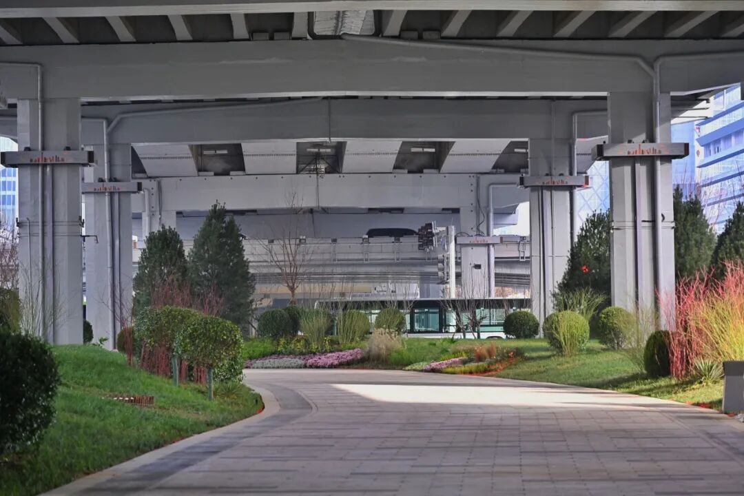 针对桥下光照不足的特点,专门种植了耐阴喜阴的植物,并配以曾用于“九三阅兵”观礼区的金黄色座椅,营造出通透大气、四季皆景的休闲环境。同步设置的夜景照明系统,在保障功能性的同时,进一步增强了视觉观赏性。桥梁外立面粉刷与线缆规整工程也同步完成,使桥下空间更加整洁美观,为市民营造出安全、舒适、雅致的步行与骑行体验。