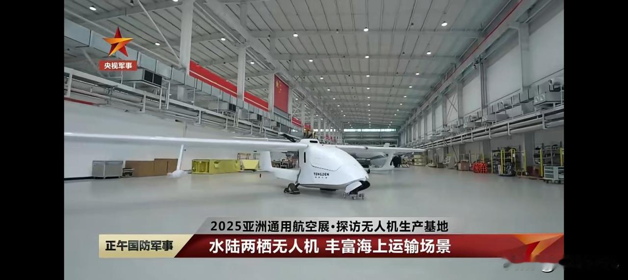 央视探访四川腾盾,曝光最新型水陆两栖无人机! 近日,2025年亚洲通用航空展,央媒记者探访四川腾盾无人机生产基地,画面中曝光多款新型无人机,包括高原专用型无人打击直升机和双尾蝎最新型号,另外,还曝光了一架水陆两栖无人机,这样式还是很新颖的! 既可以在陆地上起飞,也可以在水面上直接起飞,根据介绍,已经试验过多次了,画面中,也展示了,这款无人机,从水面起飞的画面,看起来,翼展很大,总师介绍,这款无人机,应用场 景还是挺广泛的,比如说,向海岛运输一些紧急物资或是药品,感觉用途还是可以的,最快速度,能达到200公里每小时,也就是200迈,这速度可以了,对于这一类无人机来说! 民用方面,应用场景应该也是不错,未来低空经济全面兴起的时候,它的应用场景可能会更广泛吧! 四川现在都这么强了吗,前几天公开高超声速导弹那个叫凌空天行公司,也是在四川吧,这个腾盾公司,也是够厉害了,军方都列装了双尾蝎无人机了,看来研发能力还是挺强的! 大家觉得呢?评论区说说你的看法自贡造无人机 腾盾无人机 陆空两栖无人机