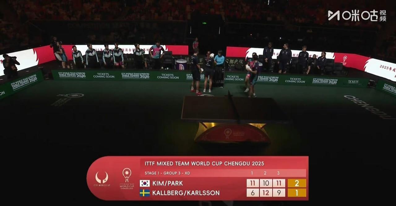 第一盘朴康贤/金娜英2-1领先卡尔森/C·卡尔伯格,三局比分为:11-6,10-12,11-9。 瑞典队能拿下一局也不错了,卡尔森年龄大了,也就是能打个双打了。 第二盘申裕斌2-1战胜琳达·博格斯特隆,三局比分为:10-12,12-10,11-5, 琳达是削球手,小申看来对削球有点生疏了,打得比较费劲,第二局申裕斌1-6落后,很顽强地追分,还好逆转了[吃瓜群众]。 这是2025成都混团世界杯第一阶段小组赛,第三组韩国队对阵瑞典队的首盘比赛,目前韩国队4-2领先瑞典队! 第三盘:张禹珍🆚安东·卡尔伯格!