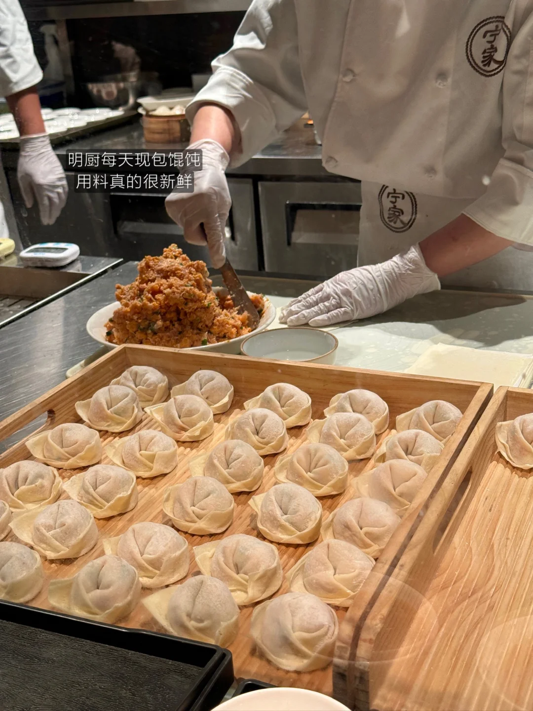 在南京德基,除了排队没有缺点! 是那种很温馨的家烧台州菜 环境很适合请人吃饭!明厨现点现做,很有烟火气! · 经常吃的 ✔️宁家烧膏蟹 ✔️海肠韭菜釜饭 ✔️芝麻糯米年糕 ✔️宁家海胆大馄饨 ✔️宁家膏蟹烧豆面 · 这个季节的蟹,蟹黄和蟹膏好饱满! 尤其是宁家膏蟹烧豆面,真的很爱台州的手工豆面!豆面软糯吸满汤汁! 芝麻糯米年糕,香糯香糯的,芝麻味浓郁,记得趁热吃! 宁家海胆大馄饨,都是现包现蒸的!海胆馅的,特别鲜! · 📍宁家十職(南京德基店) 南京南京旅游攻略南京德基台州点心台州海鲜宁家十职南京美食南京新街口