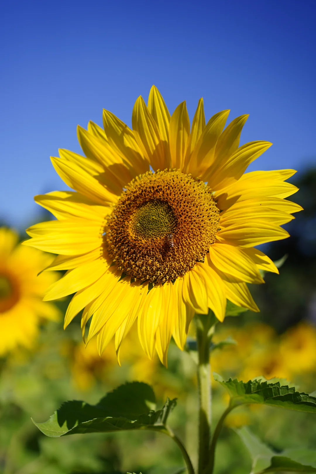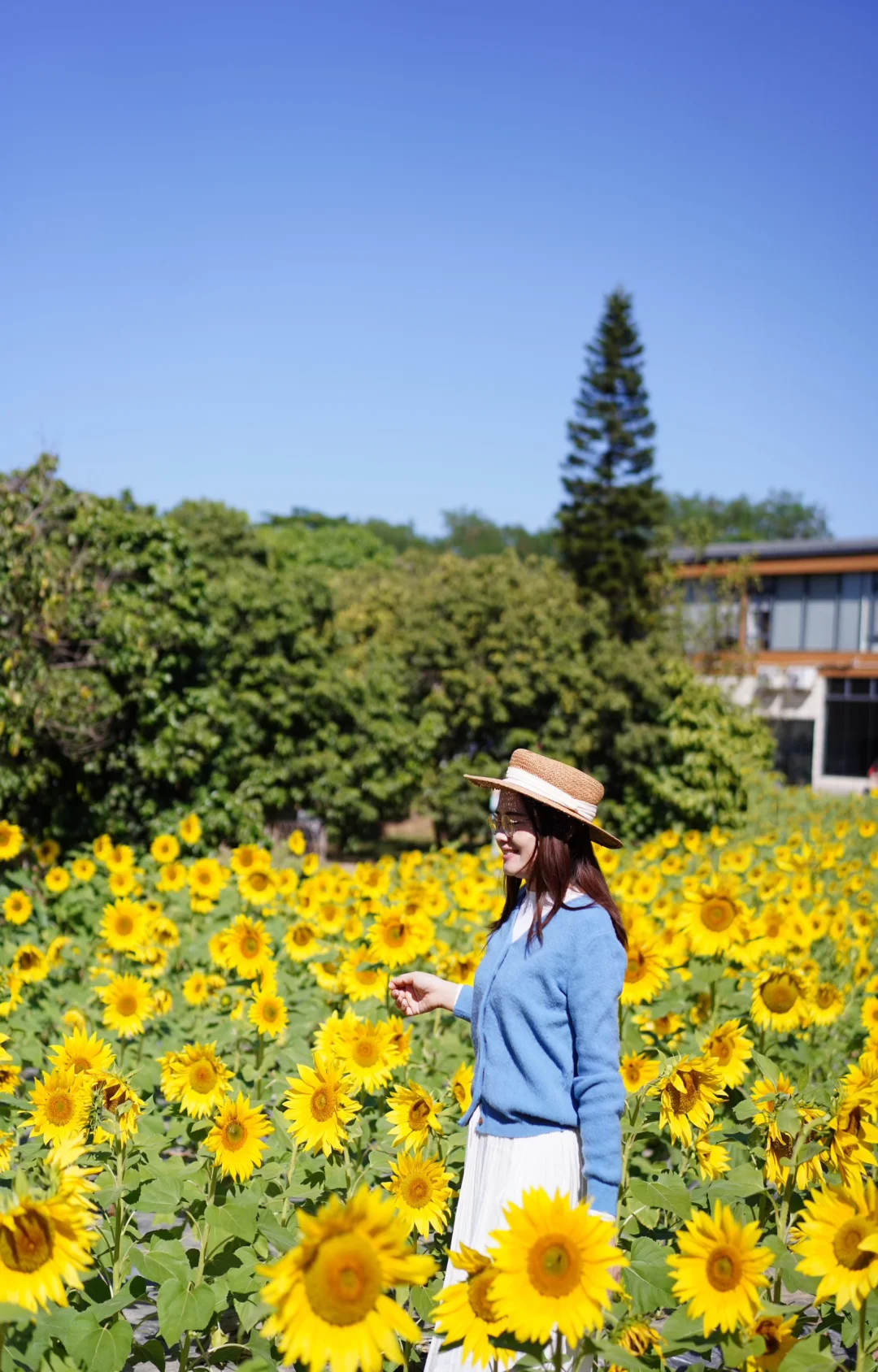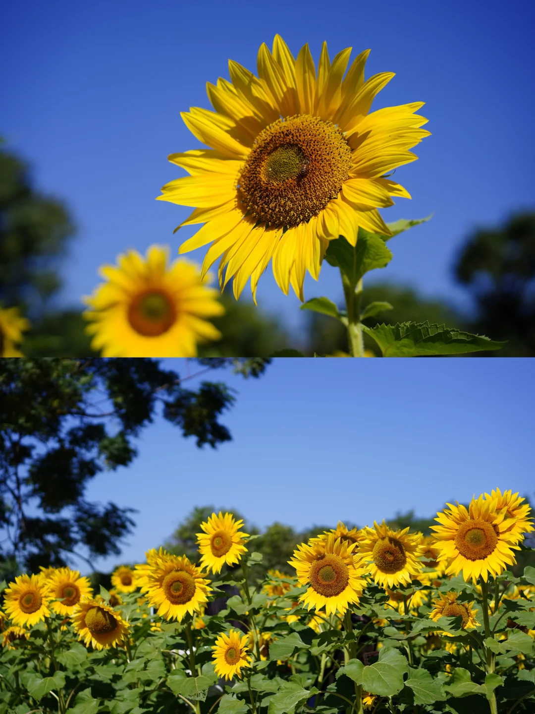 市区出发半小时,就能看到一大片向日葵花海,好有生命力,配上蓝天白云,真的很出片!