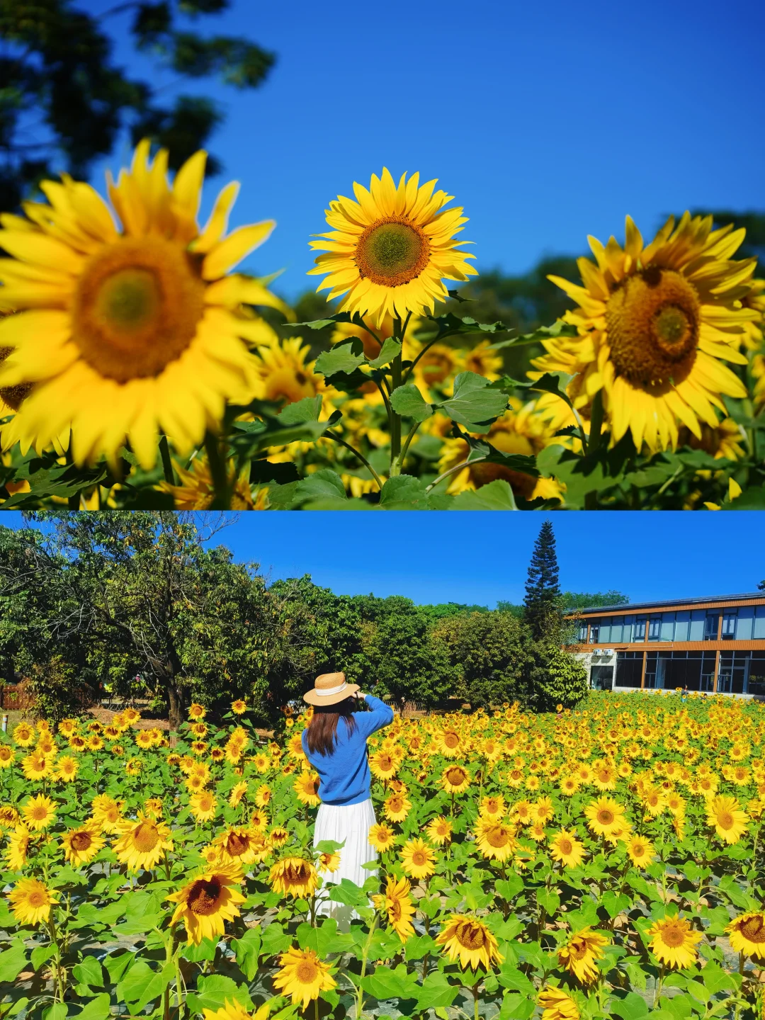 🌻这里有三处花海,前面靠近门口的两边较矮,很适合拍人像,后面还有一处较高大的花海,建议早点11点前或者下午3点后,光线较柔和,工作日的话更好,人少好拍,可以独享整片花海!