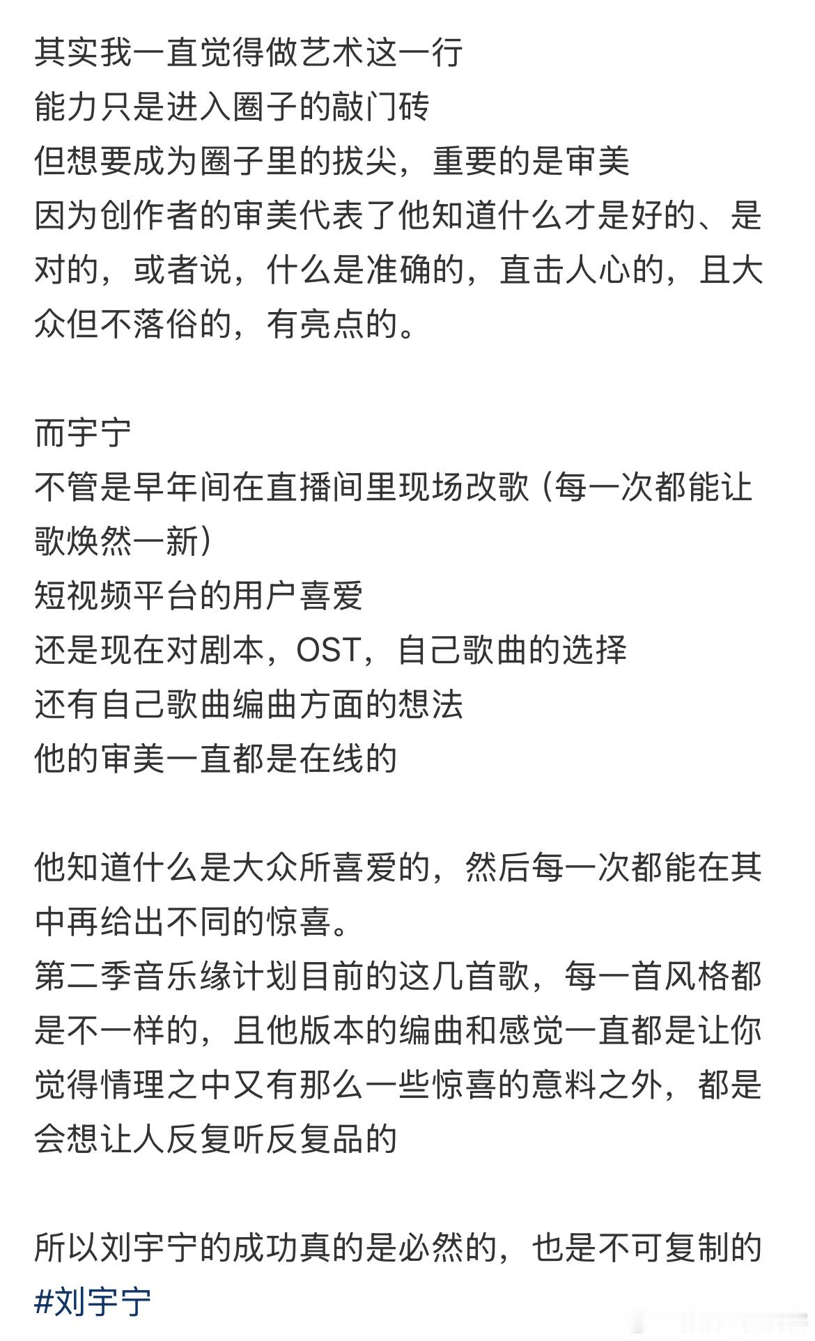 这个观点真的很棒刘宇宁天生具有艺术天赋也是做艺术行业的料审美好别人很难复制和超越👏👏