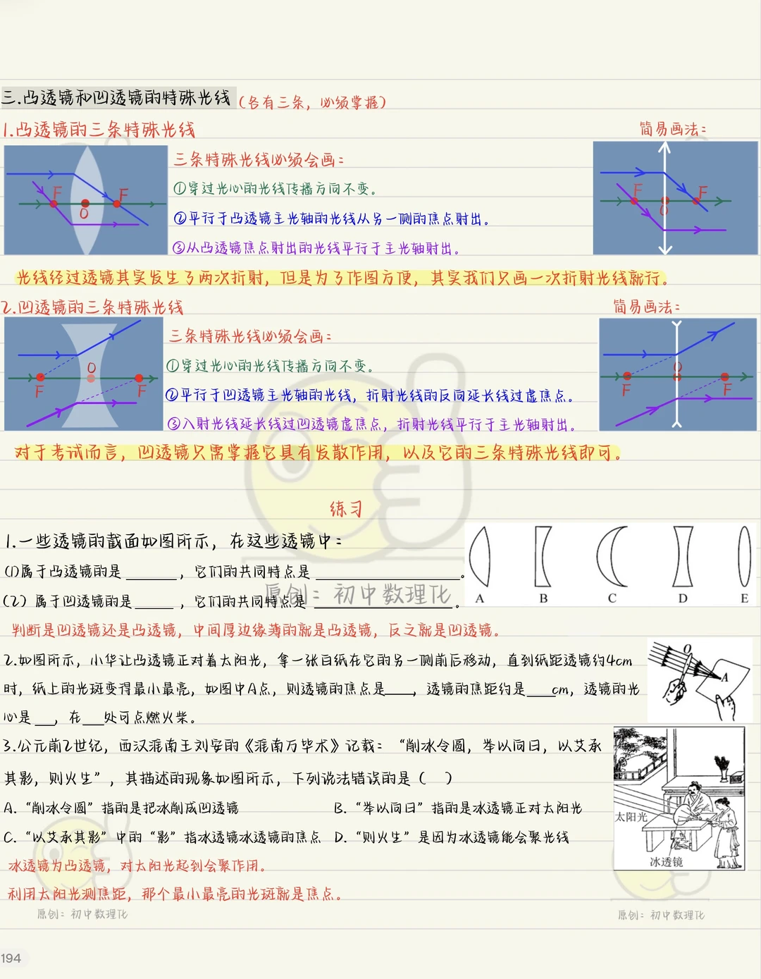 凸透镜成像规律 凸透镜八上物理 初二上物理 物理