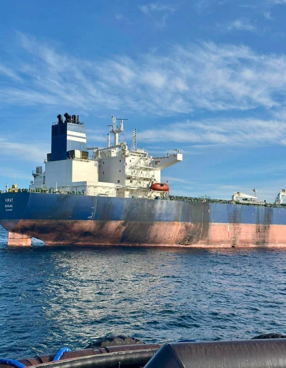 俄罗斯油轮Virat号前天晚上遭到两艘乌克兰自爆艇袭击后的照片,这艘船还是比较耐