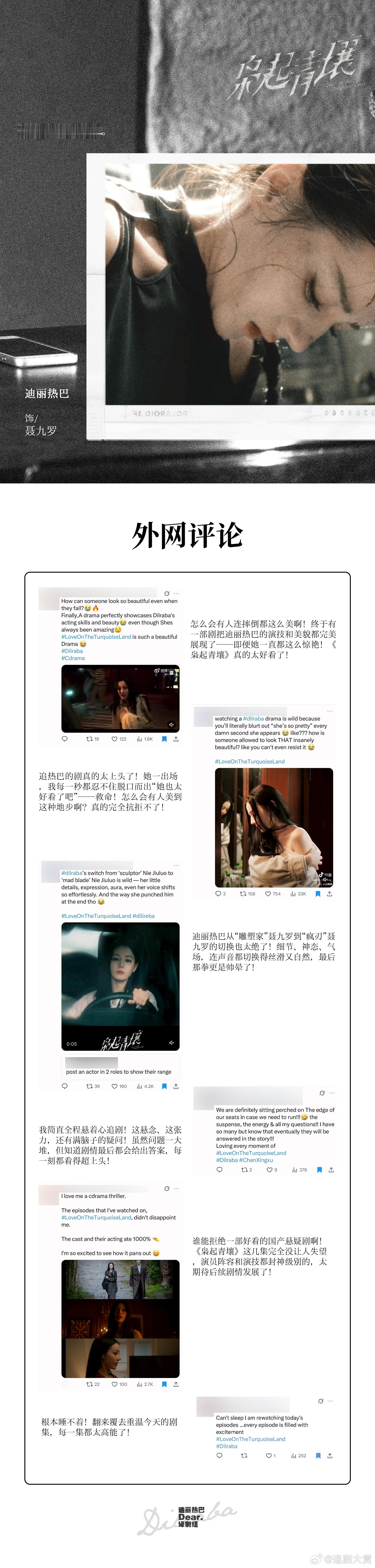 总结外网对枭起青壤的评价,夸迪丽热巴是天花级别的演员,好多长篇剧评啊,迪丽热巴值