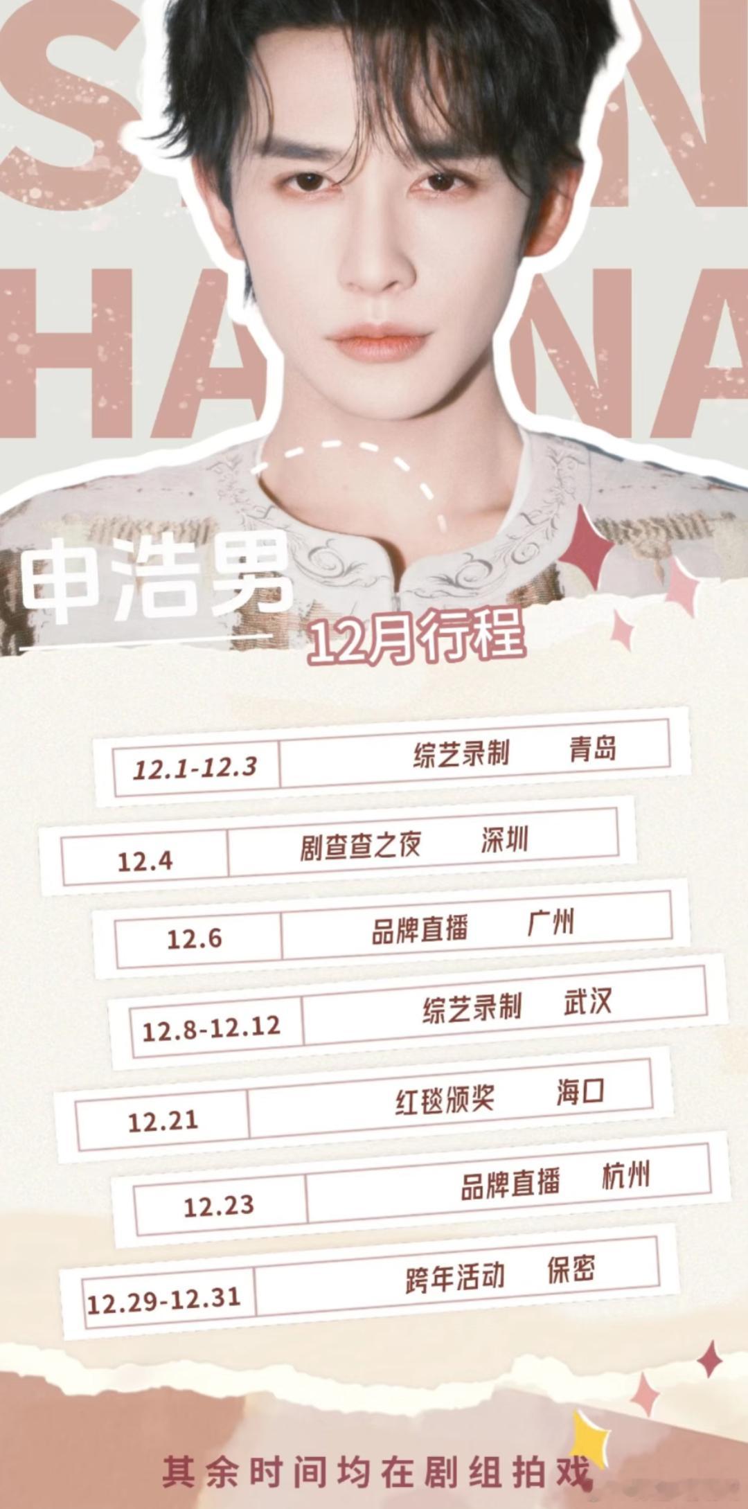 看看12月做什么呢!短剧演员12月行程图。申浩男 吴添豪 甘望星 何健麒