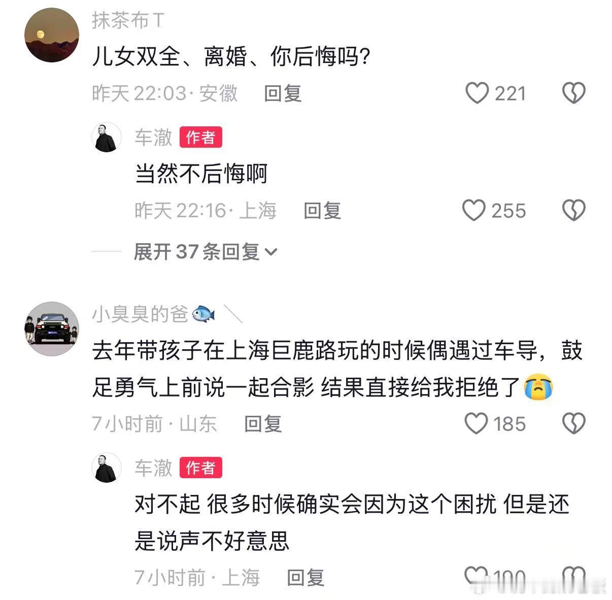 车澈回应与李嘉格离婚离婚两个月后车澈评论区开“坦白局”,被网友问儿女双全离婚悔不悔,直言“不后悔”,再问重来还离吗?干脆答“会”。这份决绝直接炸了锅,有人说他真实,也有人骂他冷漠不体面。对比李嘉格“感恩过往”的体面收尾、“离婚也是为了幸福”的清醒,两人态度反差拉满。七年婚姻最终分道扬镳,只能说,成年人的感情,冷暖自知。