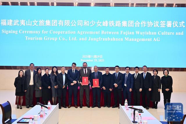11月29日,福建武夷山文旅集团有限公司与瑞士少女峰铁路集团合作协议签署仪式在武夷山举行,旨在将福建武夷山的玉女峰和瑞士格林德瓦地区的菲斯特峰打造成姐妹峰,以增强两个地区的特色文化交流和品牌宣传,推动跨地区旅游项目的落地实施。