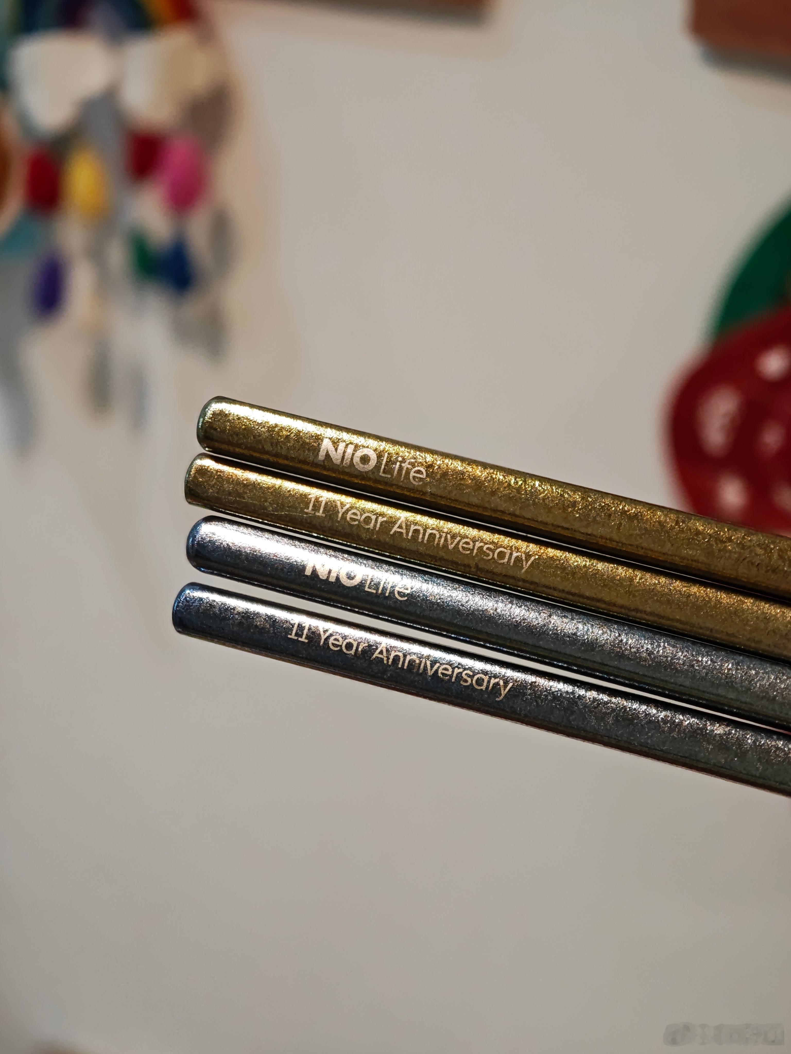 蔚来11周年纪念筷子到了。漂亮是挺漂亮的,钛合金的也很轻。但是一双50多块钱确实有点贵,这应该是我买过的最贵的筷子了 ch的蔚来nio life剁手之路