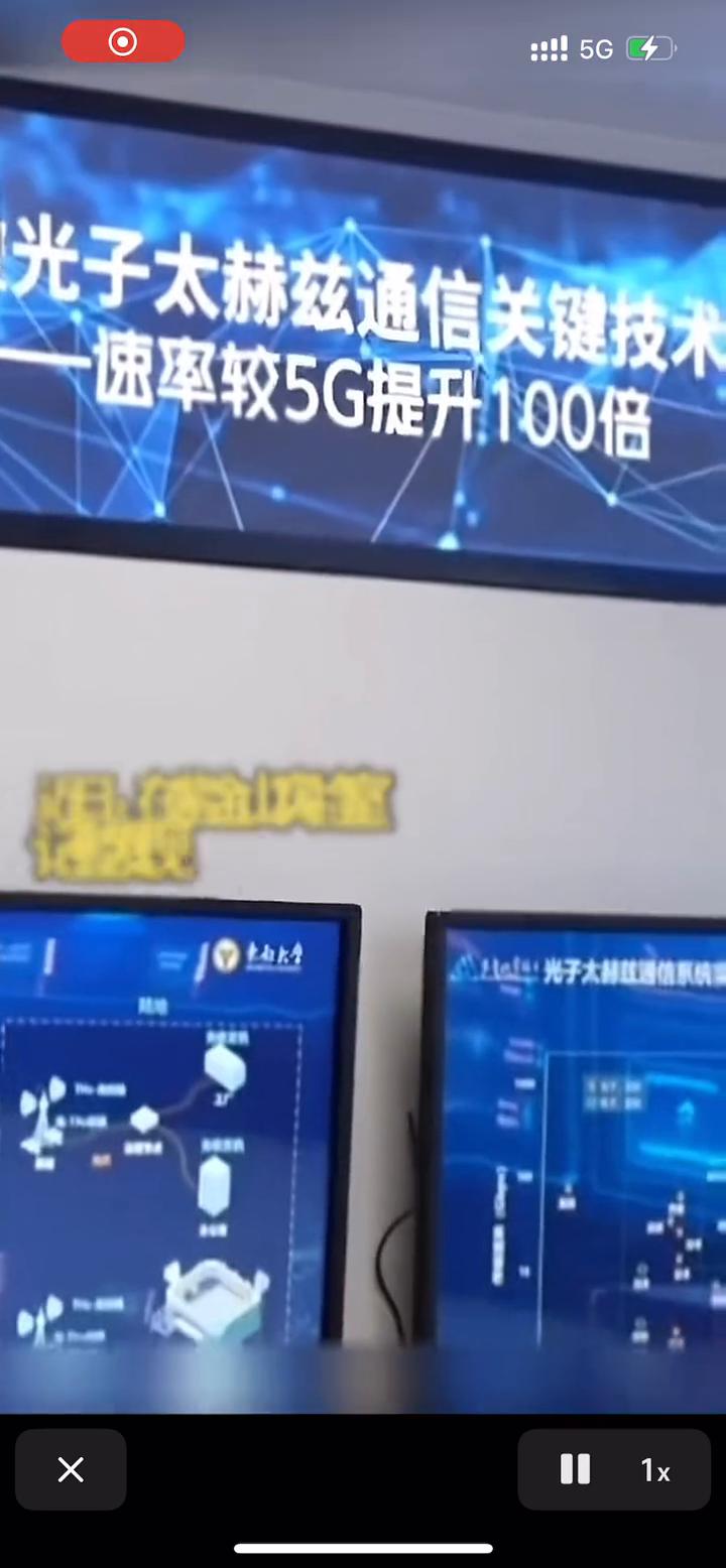 近日,在紫金山实验室记者发现了一把通往未来通信世界的"钥匙"。 那太赫兹通信技术就是一条拥有上百条车道的"超级公路"。如果5G技术是一条拥有四车道的高速公路,像这样的无线传输可以做到最快1秒钟传输一个T,速率是5G的100倍。现在一般情况下离基站越远,信号越差。但是未来用上oG无缝窗术,无论距离基站多远,都能够始终保持手机信号满格。