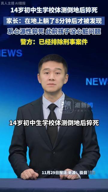 昨天看新闻,我手直接抖得握不住手机, 14岁初中生体测时倒在地上,躺了8分钟才被发现,最后没救回来。 孩子之前压根没心脏问题,警方说排除刑事案件。 有人说老师没盯紧,体测现场该有人全程看着; 也有人说体测是常规活动,谁能想到好好的孩子会出事。 可作为妈妈,我怕的就是这没想到啊! 好好的孩子去跑两步,怎么就来不及? 我们送孩子去学校,最担心的从来不是给老师添麻烦,而是万一出事,连个拉一把的人都没有。 前几天我家娃还说体测跑不动,我只催他多练, 现在才懂,比起及格,我更想他有人守着。 作为家长,你最怕孩子在学校遇到哪种来不及? 是体测没人盯,还是突发状况没人管?