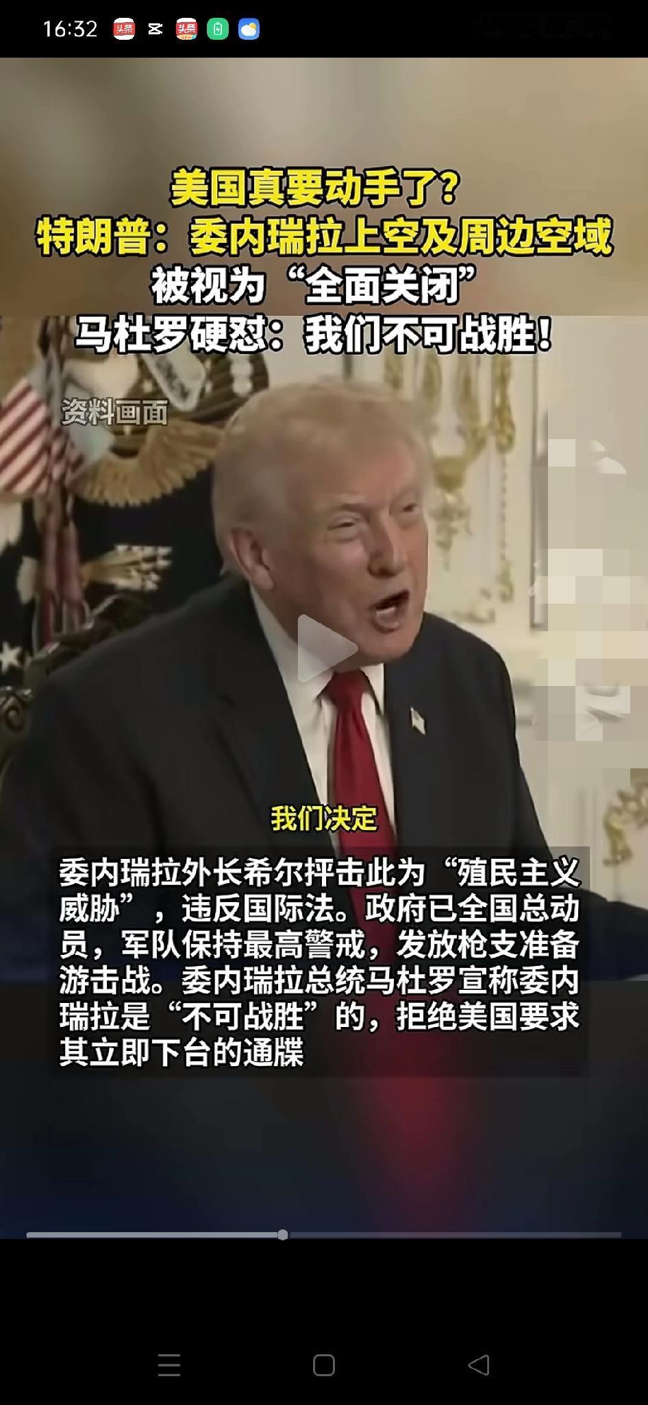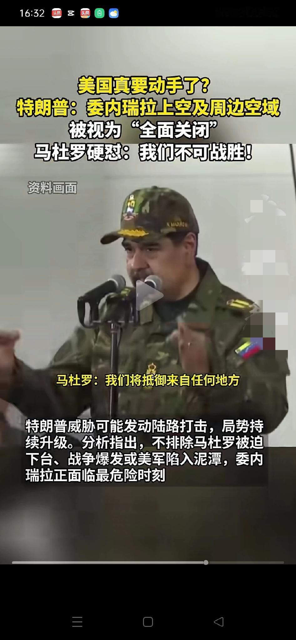 马上要震惊世界,美国摩拳擦掌,这回真的要动手了! 《纽约时报》29日报道,美国总统特朗普当天发布消息说,“委内瑞拉上空及周边空域已被关闭”。现在,美国在委内瑞拉周边地区部署了包括“福特”航母战斗群在内的大量军事力量。根据特朗普的指示,美国中情局已经在委内瑞拉开展秘密行动。 欺负人欺负到家!美国在委内瑞拉家门口耀武扬威好几个月了,以打击毒品走私的莫须有的名义,实际是奔着委内瑞拉石油去的,美国就是明晃晃的强盗。委内瑞拉就是不服,真是江湖好汉,但是危险来临。 我们要加大对日本的反击力度,加大对台独分子的打击力度,也许能缓解委内瑞拉的危险! 日本为何总是在台湾问题上挑衅中国 美国对委内瑞拉的态度为何如此强硬
