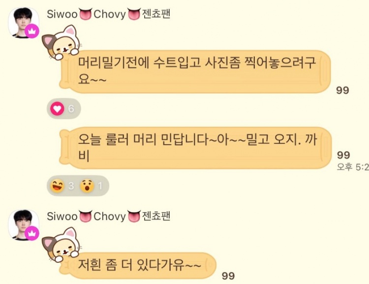 Chovy妈妈:Ruler今天要剃头了,早知道让他剃完再参加helper婚礼;Chovy会比Ruler晚一点去训练所/剃头,年底的LCK颁奖典礼也去不了了