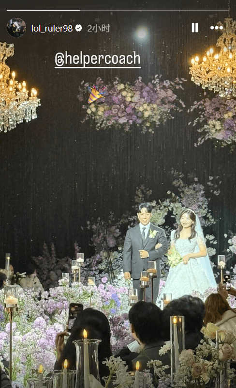 虎扑11月30日讯Ruler分享教练Helper婚礼现场照片