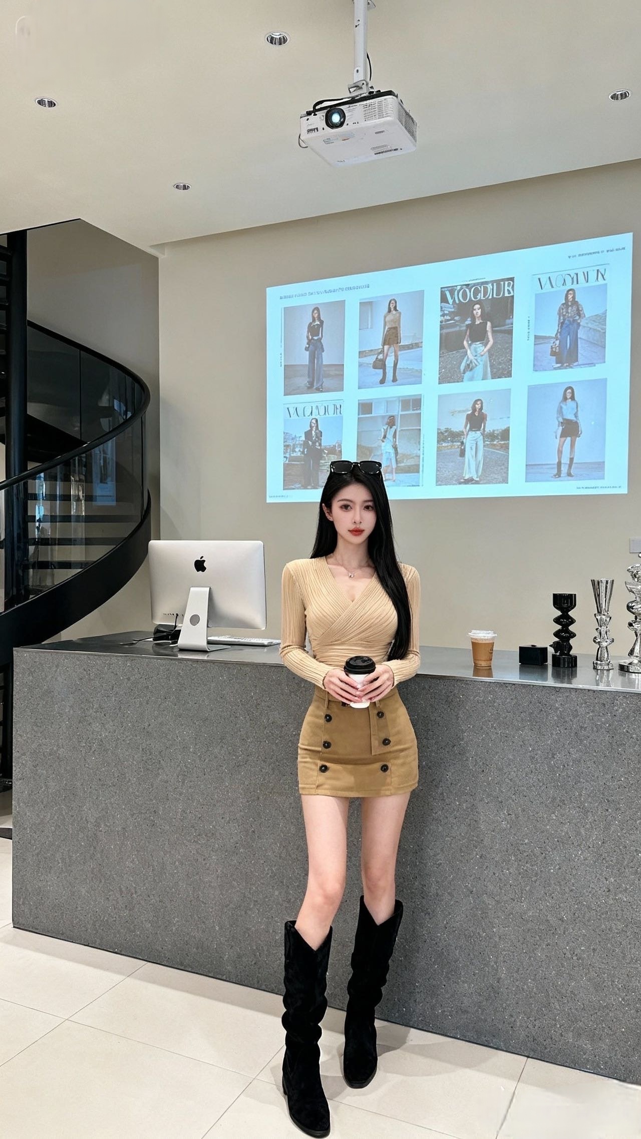 黑靴一踩,又甜又飒,抱着咖啡往工作室一站,连电脑都忍不住反光夸我(不是)!墨镜往头上一挂,主打一个“随时能去喝下午茶”的松弛感~