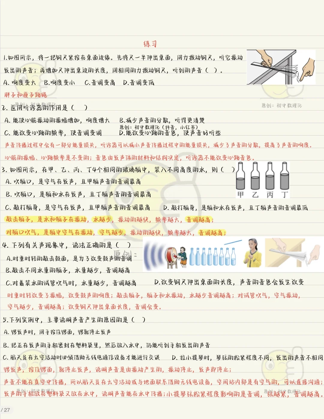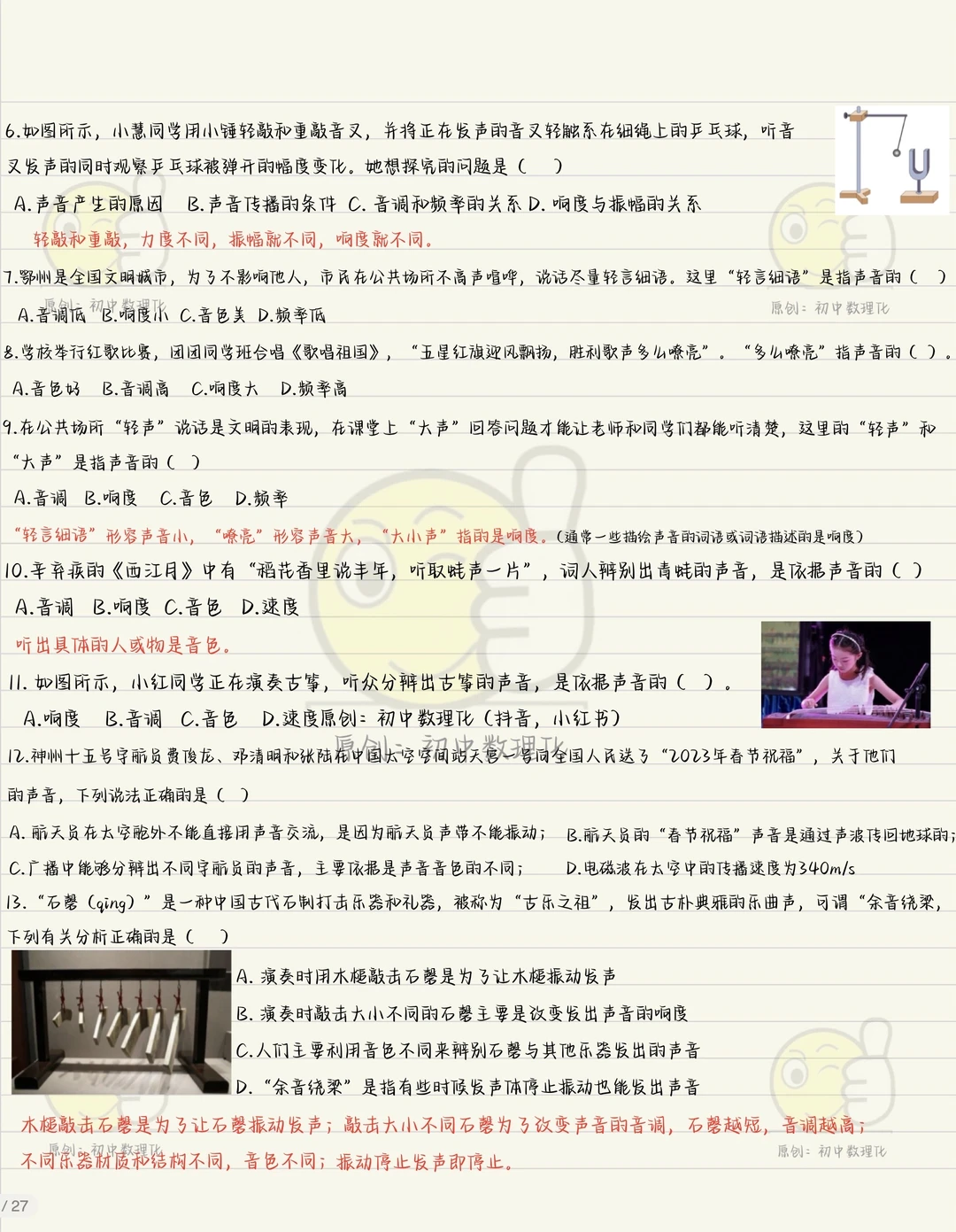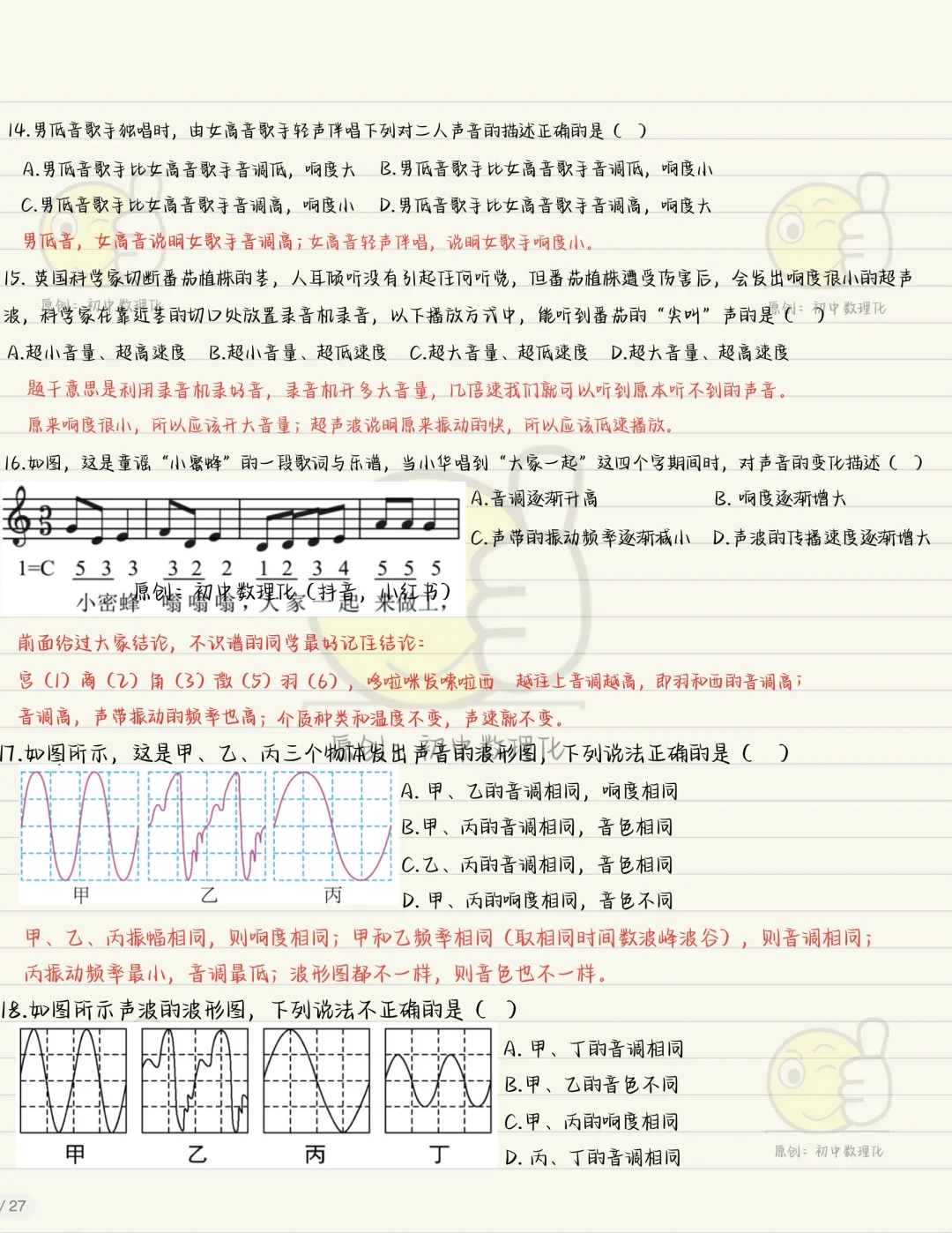 预习到这里的同学是不是懵了,什么是音调,什么是响度,什么是音色,啥啥啥,为啥要学这些因为考试考呀。八上物理音调响度音色初二上物理