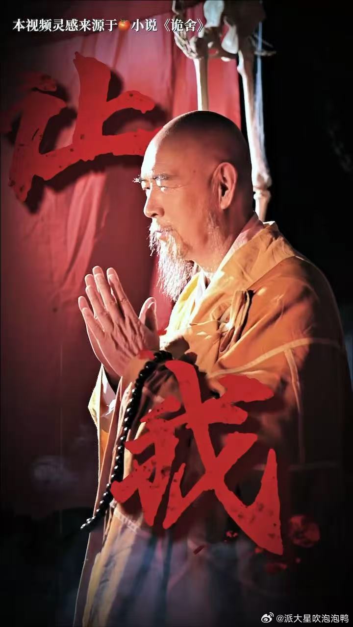 唐诡方丈cos诡舍反派本来以为方丈只会演慈悲僧人,没想到演起反派这么带感!《诡舍》里的杀人主持,一举一动都透着狠劲,和《唐诡》里的方丈形成鲜明对比
