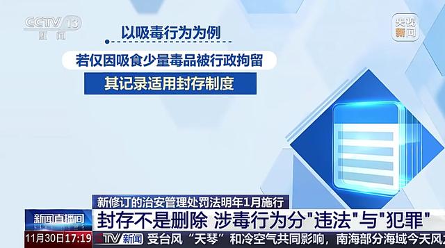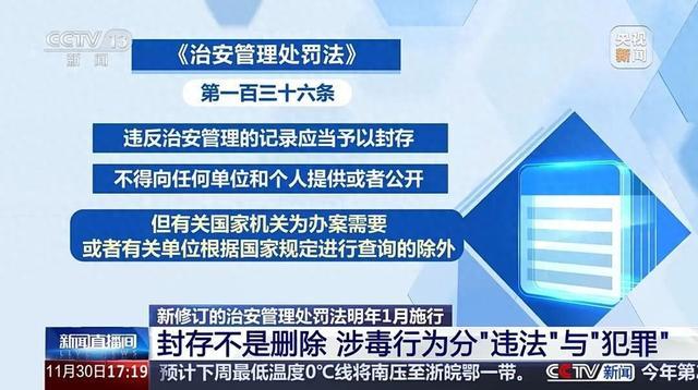 11月30日,据央视新闻消息:治安违法记录封存针对的是“尚不构成刑事处罚”的行政违法行为,走私、贩卖毒品构成犯罪,需纳入刑事犯罪记录管理,不适用封存规则。